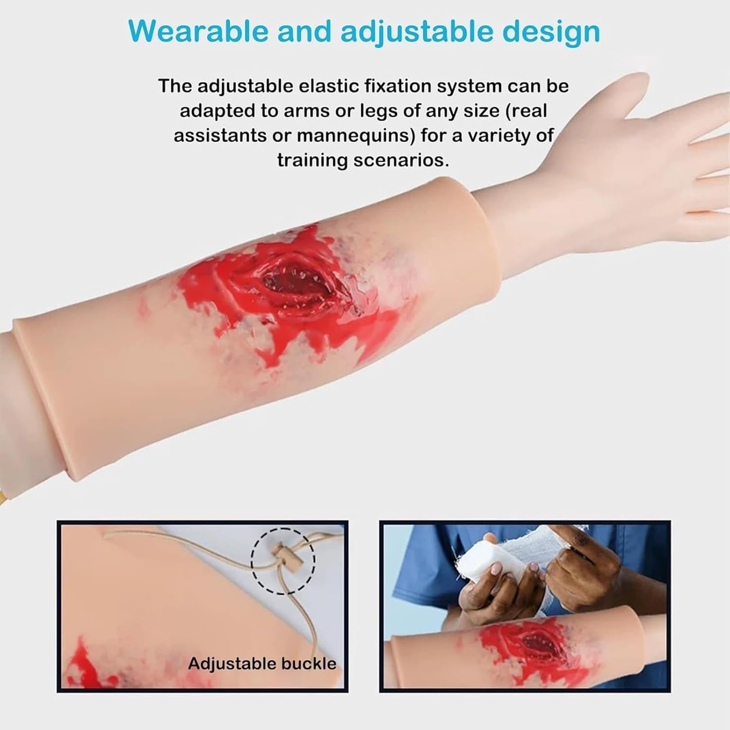 Specifications:Product Name: Wound ModelMaterial: SiliconeDimensions: 270*195*5mm/10.6*7.7*0.2inWeight: 356 gEnhance your wound care practice and elevate your first aid skills.Packaging Contents:Trauma Model × 1Notas:1. Debido a los diferentes monitores y efectos de iluminación, el color real del producto puede variar ligeramente del de la imagen. ¡Gracias!2. Debido a la medición manual, puede haber un margen de error de 2 a 5 cm.
