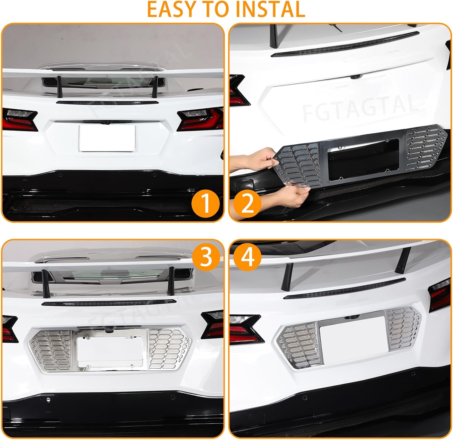 Decorative your Rear License Frame Condition: 100% Brand New Product features: Light weight, Colorfast, Scratch-resistant, Anti-corrosion, Easy to install Fitment: - Rear License Plate Frame Grill Vent Insert Compatible with Chevrolet Corvette C8 2020-2026 Material: Aluminum AlloyEasy to use and to operate at affordable prices. Any questions about installation, please feel free to contact us. Package Include: 1PC X License Plate Frame Grill Vent Insert NOTES: Please check whether this item can fit on your car before purchasing