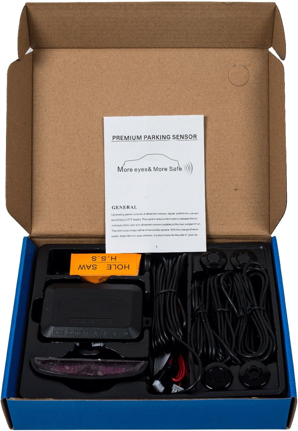 Feature Brand New and Advance Quality! LED digital display with BiBi sound reminder. 4 sensor system, double CPU and advanced chipset to enhanced coverage and detection. Be beneficial to prevent dangerous and costly collisions. Help to provide increased safety for passengers, pedestrians and family members who happen to be around the moving vehicle. Detect small children and low walls as well. Anti-freeze and rain proof. Easy installation and operation. With a drill head, convenient to drill hole.Technical: Rated Voltage: DC 12V Operating Range: 10V~ 14V DC Rated Current: 200mA+/-50mA (1) Detective range:0.3-1.0m back: 03.-3.0m(2.3m.2.5m); (2) Detective range:0.3-0.8m back: 03.-2.5m Display Working Temperature: -20 ~ +70℃Package includes 1 * Main Control Box 1 * LCD Display Indicator 4 * Sensors with 2.5M Line 1 * Hole Saw 1 * Power Cable about 0.8M 2 * Double Side Sticker 1 * User Manual