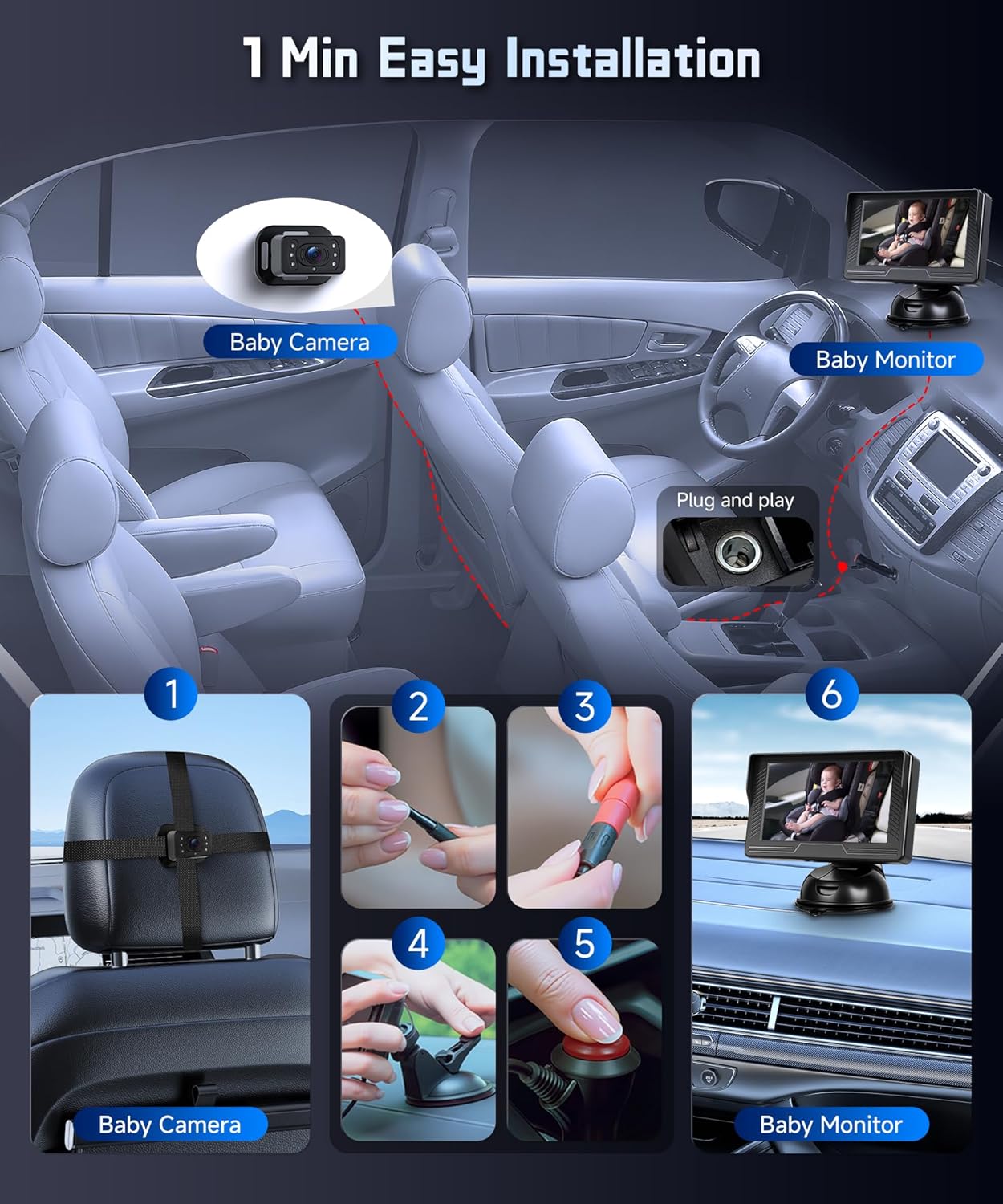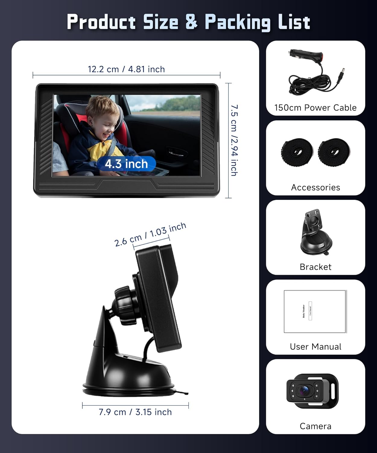 | BuiltIn Media | 4.3” Color IPS Monitor, Car cigarette lighter, Specification, Universal Mount With Adhesive Pad |