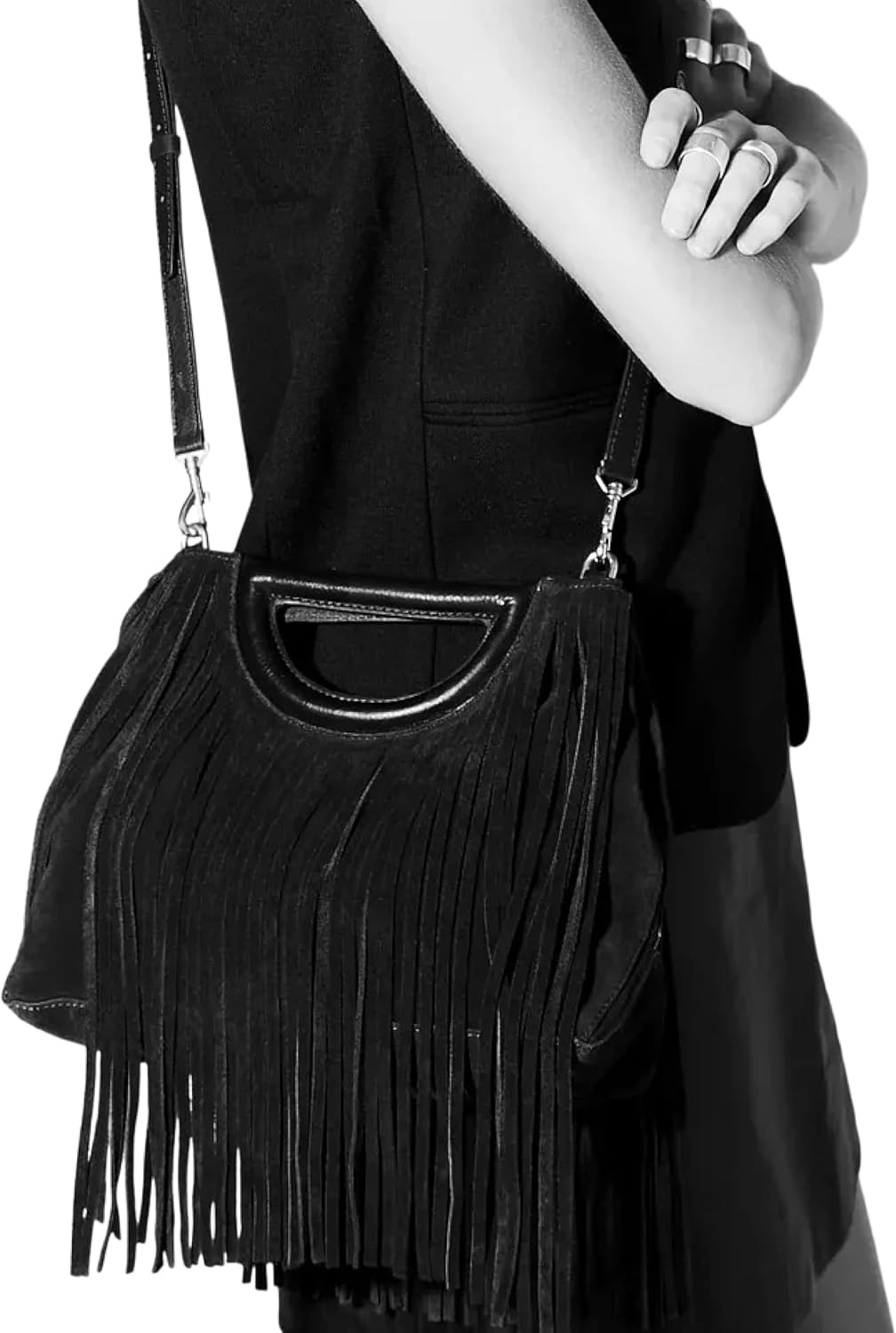 Bold movement meets bohemian edge in the Fringe Handheld Crossbody. Crafted in soft suede with cascading fringe and a sculptural cutout handle, this bag instantly upgrades any outfit. The zip closure keeps belongings secure, while the long strap offers hands-free convenience. From festivals to city nights, it’s your go-to statement crossbody.