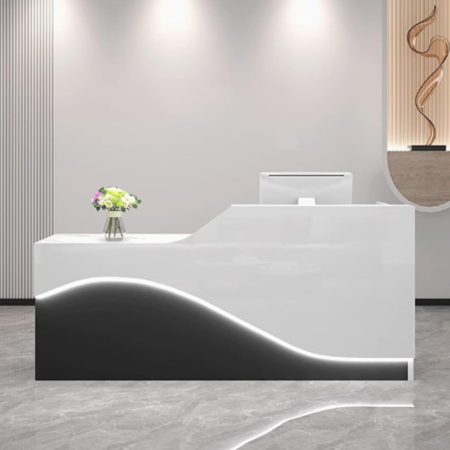 Just use GUQASDV receptionist desk with drawers to store your computer, files, keep your work essentials organised and your workspace neat and tidyEasy to assemble: under the guidance of detailed instruction, you are sure to figure out how to put all parts of reception desk counter table together in a short timeApplication: with modern yet minimalistic appearance, office counter desk is suitable for home, company, lobby, and store. Whether used as a reception desk, retail counter desk or computer desk, it would serve the purpose well.Material: Engineered WoodColor: white, white with gold, white texture + white, white + gray, white texture + gray texture, white texture + black texture, white + natural, white + orange, white + black, white + blue, gray texture + black, gray + white, white + brownSize: 120x50x100cm, 140x50x100cmNote: 01 There may be a 3-5cm error in manual measurement which is normal, please understand02 Due to different displays or shooting environments, the product may have color differences, please understand