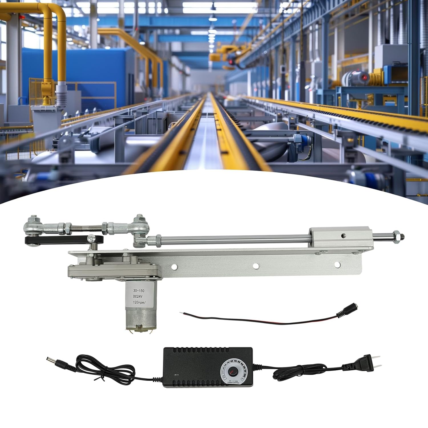 DescriptionAre you still looking for a lightweight and easy-to-operate reciprocating cycle linear motor? Our motor is made of high-quality materials and can be used for a long time. Key FeaturesEasy Clean-Up: The surface of the product is smooth and it has an open design, so you can easily use a soft cloth to wipe it clean.Customer Service: We aim to provide quality products and services. If you have any problems, please feel free to contact us. We will reply and solve the problem for you as soon as possible.DetailsPre-Dilled Installation Holes: 8mm pre-drilled installation holes allow you to install this product easily and conveniently. Brush Feets: It allows for convenient connection or welding for stable running.Specifications Color: SilverMaterial: Aluminum Alloy, SteelProcess: Chrome Plated, AnodizingMotor Type: DC Pure Copper MotorPower Source: Corded ElectricPlug Type: US StandardInput Voltage: AC100-240VMotor Voltage: DC24VSpeed: Approx. 20-120RPMThread Specification: M8Thrust Range: Generally 1-10kg/2.2-22.05lbsOperating Temperature: -10-50℃/14-122℉Installation Hole Diameter: 8mm/0.315inStroke Range: 3-15cm/1.2-5.9inSwing Arm Length: 125mm/4.92inInstallation Hole Spacing: 100mm/3.94inTotal Length: 45cm/17.7inPackage Size: 45*15*7cm/17.72*5.91*2.76inGross Weight: 1.6kg/3.53lbsPackage Included1 * Reciprocating Cycle Linear Motor1 * Power Adapter 1 * CableNotes1.When using, please fix the screws of the swing arm to prevent changes in stroke.Please allow the slight color difference caused by the shooting light and 1-3cm error.