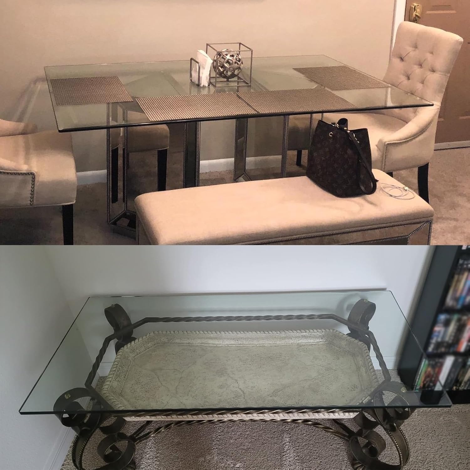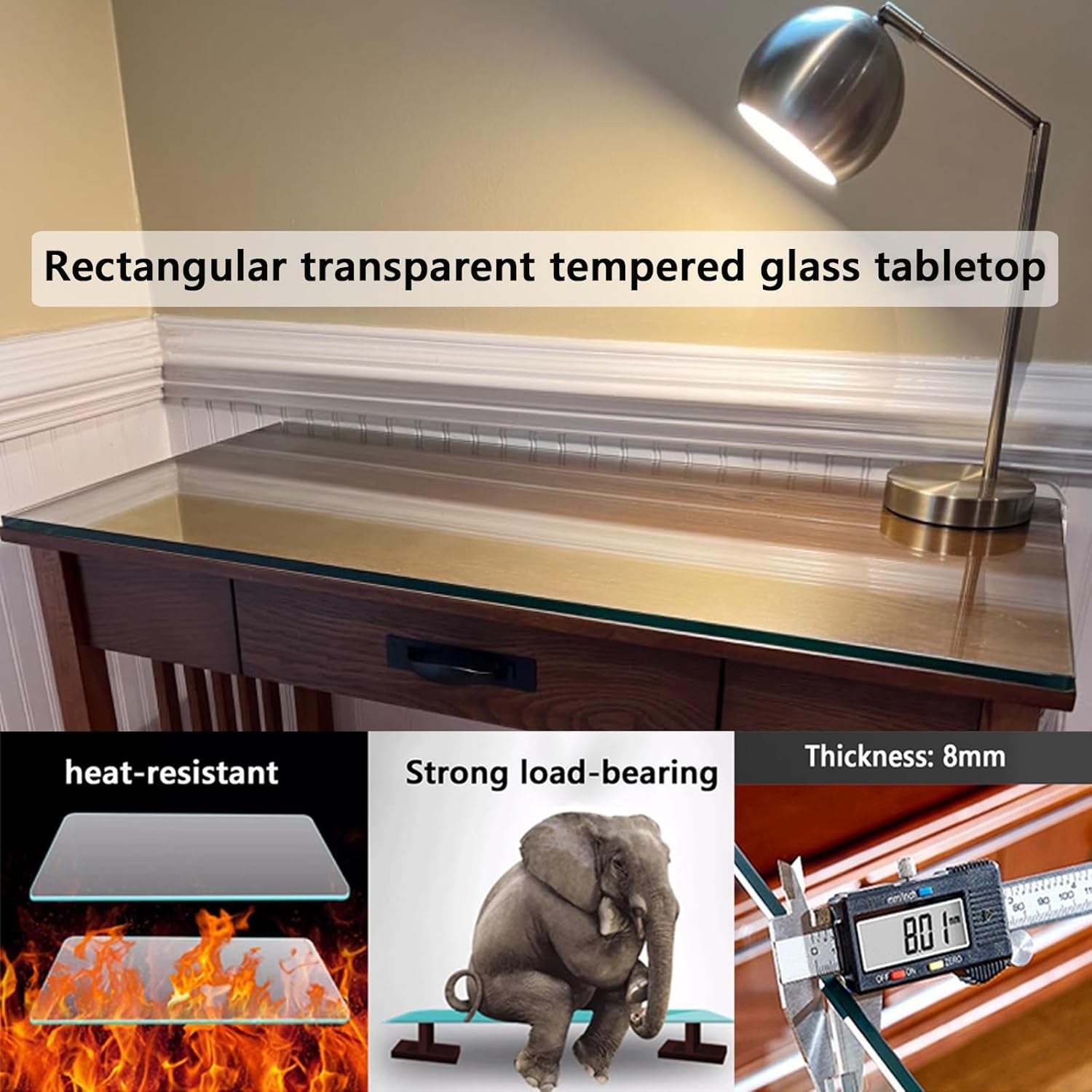 The rectangular tempered glass tabletop can be used as a replacement tabletop, with a clean and elegant appearance, creating a unique and elegant look and can protect the existing tabletop.Name: Rectangular tempered glass table topColor: TransparentMaterial: tempered glassshape: rectangleFeatures: high strength/easy to clean/high temperature resistance/wear resistance/safer to useApplication: Dining table, coffee table, office desk