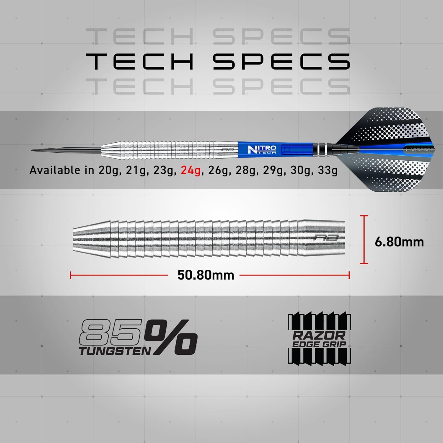Introducing the Red Dragon Razor Edge Original Darts, a perfect blend of innovation and craftsmanship designed for players who demand performance at the highest level. These premium darts are engineered to give you the ultimate competitive edge with superior grip, accuracy, and consistency. Whether you're an experienced player or just starting your darting journey, the Razor Edge Original Darts will elevate your game to new heights.Crafted with precision and built to last, the Red Dragon Razor Edge Original Darts feature high-density tungsten barrels known for their unrivaled durability. Tungsten's extraordinary hardness ensures that these darts can withstand the rigors of intense gameplay while maintaining their sleek, aerodynamic shape, round after round. Unlike softer materials, tungsten provides both longevity and a compact profile for a streamlined throwing experience.Designed to offer a firm yet comfortable hold, this advanced Razor Edge Grip ensures your fingers stay locked in place, giving you precise control during even the most challenging throws. This enhances your accuracy but also boosts your confidence as you step up to the oche, knowing you have the perfect feel in your hand.Personalize your game with the flexibility to choose from multiple weight options, ensuring you have the perfect dart for your playing style. Whether you prefer a lighter or heavier dart, the Razor Edge Originals are available in a range of weights, so you can tailor your set-up to match your technique and preferences.Each dart within a set is weighed and balanced to within 0.1g, ensuring consistent performance across the board. No more dealing with imbalanced darts that throw off your rhythm – each dart is perfectly matched for flawless accuracy.Feel the difference with every throw. Achieve the winning edge with Red Dragon Razor Edge Original Darts.