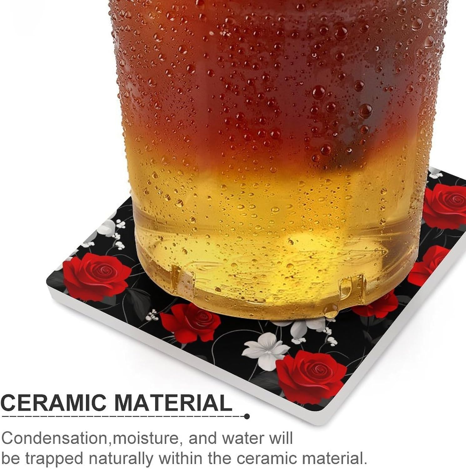 Cute Printed Absorbent Ceramic Coaster for Drinks Funny Coasters with Cork Base Suitable for Kinds of Mugs, Cups, Prevent Tabletop Wear And Scratches, and is Easy to Clean