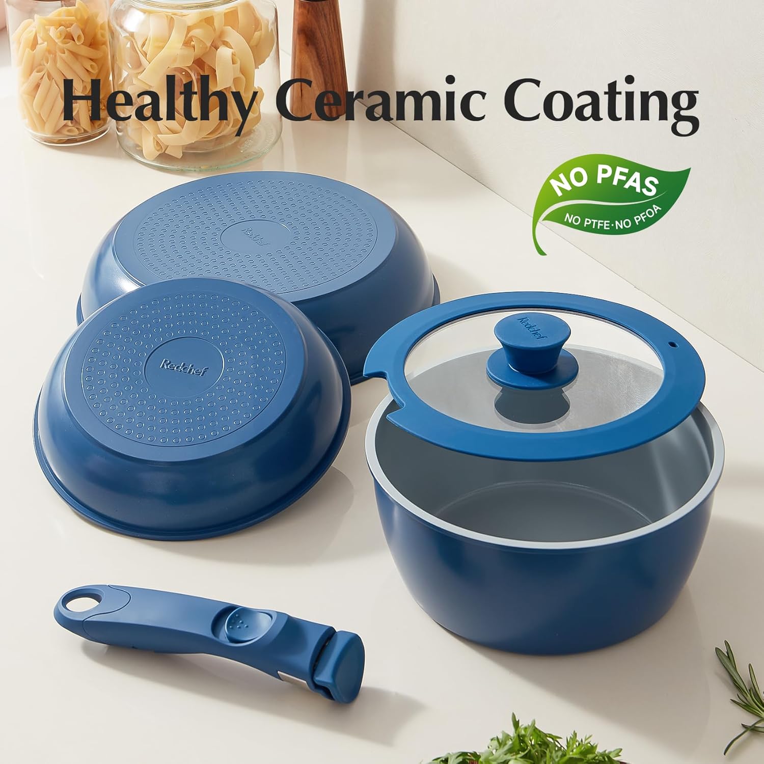 If you are looking for good quality and healthy ceramic nonstick pans and pots sets cookware, you shall check with our Redchef detachable non-stick cooking sets. The cookware sets have the below features: Ultimate Multifunctionality: The Redchef cookware set features detachable handles that can be removed from the stove, placed in the oven, on the table, or in the fridge. The stackable design allows for optimized storage and can save up to 70% of space. with a paper towel or rinsed in the sink. As a cooking and dishwasher set, it only needs to be cleaned once. Compatible to all stovetops: The cookware set is suitable for RVs, camping, and home use. The universal bottom is suitable for gas, electric, halogen, induction, and ceramic stovetops. High Quality: The cookware set has undergone professional safety testing and can withstand up to 26 pounds/12 kilograms. It has balanced convenient features, quick and even heat distribution, and non-stick properties similar to other ROKURWOK cookware sets. Non-Toxic: The cookware set is made of food-safe materials and does not contain PFAS, PTFE, lead, or cadmium, making it safe for your family.