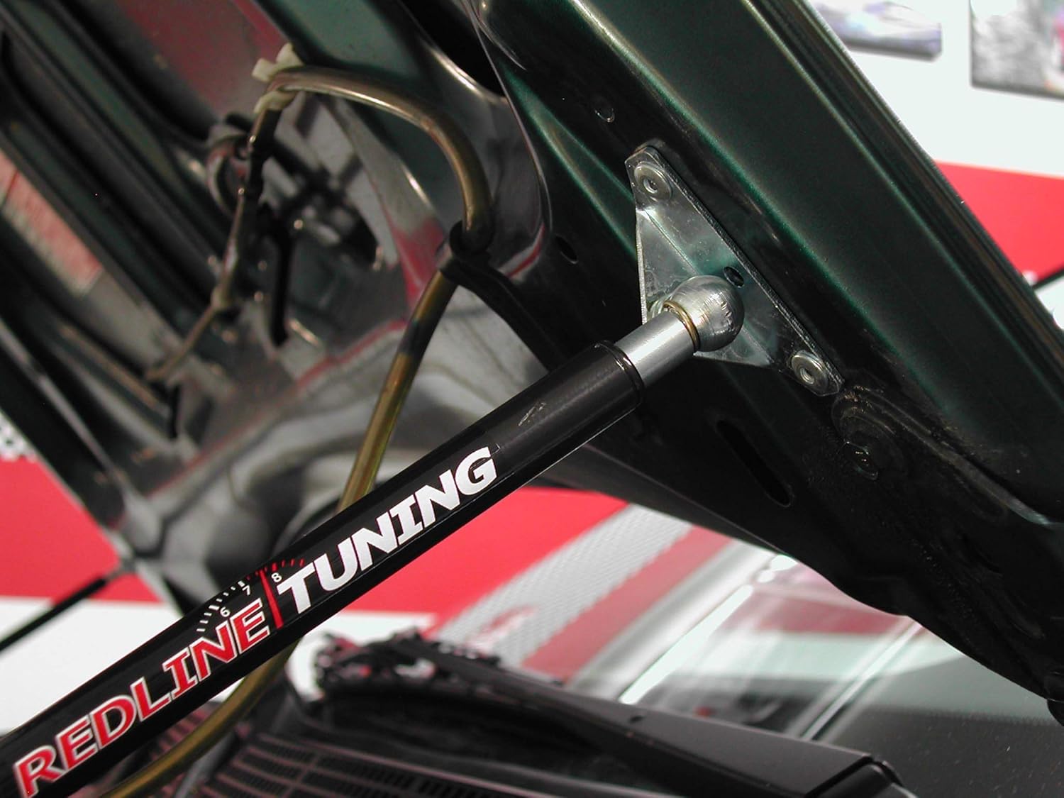 Replace your hood's prop rod today with our Redline Tuning hood QuickLIFT system. Progressive gas springs will lift and hold your hood without the need for a poorly placed prop-rod, simply start to lift your hood and let our QuickLIFT system take over. Your hood will lift and hold firmly at the raised position - eliminate your prop rod today.