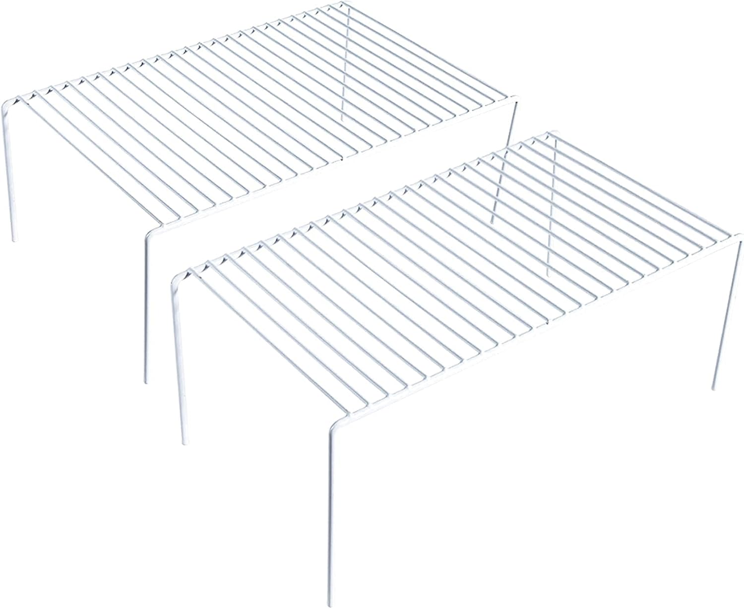 • Made of metal steel with a white PR coating that cleans easily and wont rust or scratch delicate items, these shelves will be around for the long haul. Plastic feet keep shelves in place and wont scratch surface underneath.