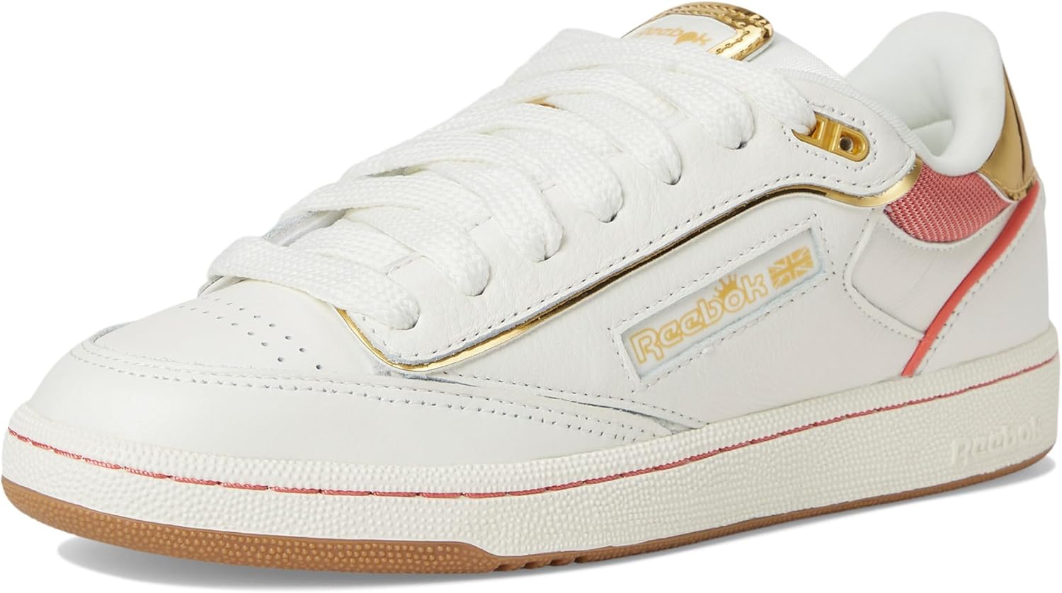 The Reebok Lifestyle Club C Bulc Clean Angel Reese Sneakers are crafted with a smooth suede upper with hits of synthetic gold-toned patent leather detailing, textile lining, and a cushioned rubber insole. The lace-up sneakers come in a low-top silhouette with a round toe shape. On the court, these embody the Reebok spirit with their unapologetic and irreverent attitude. Off the court, its style is girly and glamorous, showing a love for pink. Rubber outsole.