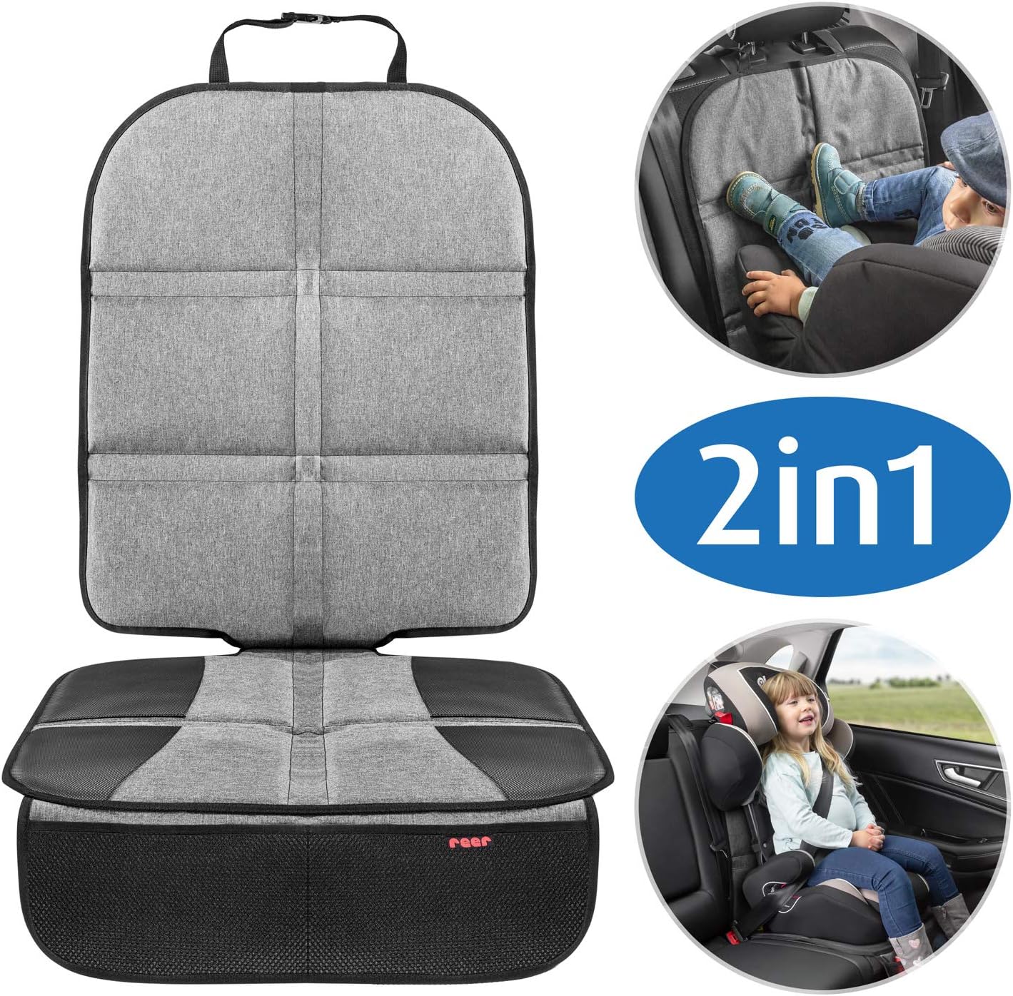 Baby seats rear-facing seats and child seats are normally positioned directly on your car's upholstery where sooner or later they leave permanent marks on the seat covers. The protective car seat pad is just one of the items in our new TravelKid range. These products ensure safety and order in the car and make journeys with children easier. As child seats are mostly used over a long time period over time indentations and fine cracks appear on your seat upholstery due to the weight and back-and-forth movement of the seat. The padding on the protective car seat pad protects the seat against indentations left by child seats. Thanks to its additional foot section which extends over the seat the lower section of the back seat is also protected against dirt from children's mucky shoes. In rear-facing seats children travel in the car facing backwards. As a result backrests can easily be damaged by children's dirty shoes. The TravelKid MaxiProtect has an extra large backrest surface therefore covering the whole height of the backrest. This reliably protects your backrest against dirt. The seat cover has a foot section with 2 integrated front net pockets. These provide practical storage space for books games and lots more. Anti-slip base for better grip on the child seat. Extra large surface ideal for reborder seats. Protects against denting and dirt in the car. Easy to clean thanks to its water and dirt-repellent material. Practical pockets for better organisation. Suitable for all common car seats. Dimensions: 46 x 120 cm. Odeal for use with the TravelKid range: The TravelKid organizer box for even more storage space or the TravelKid Entertain car back seat organizer for protecting your car's back seats.