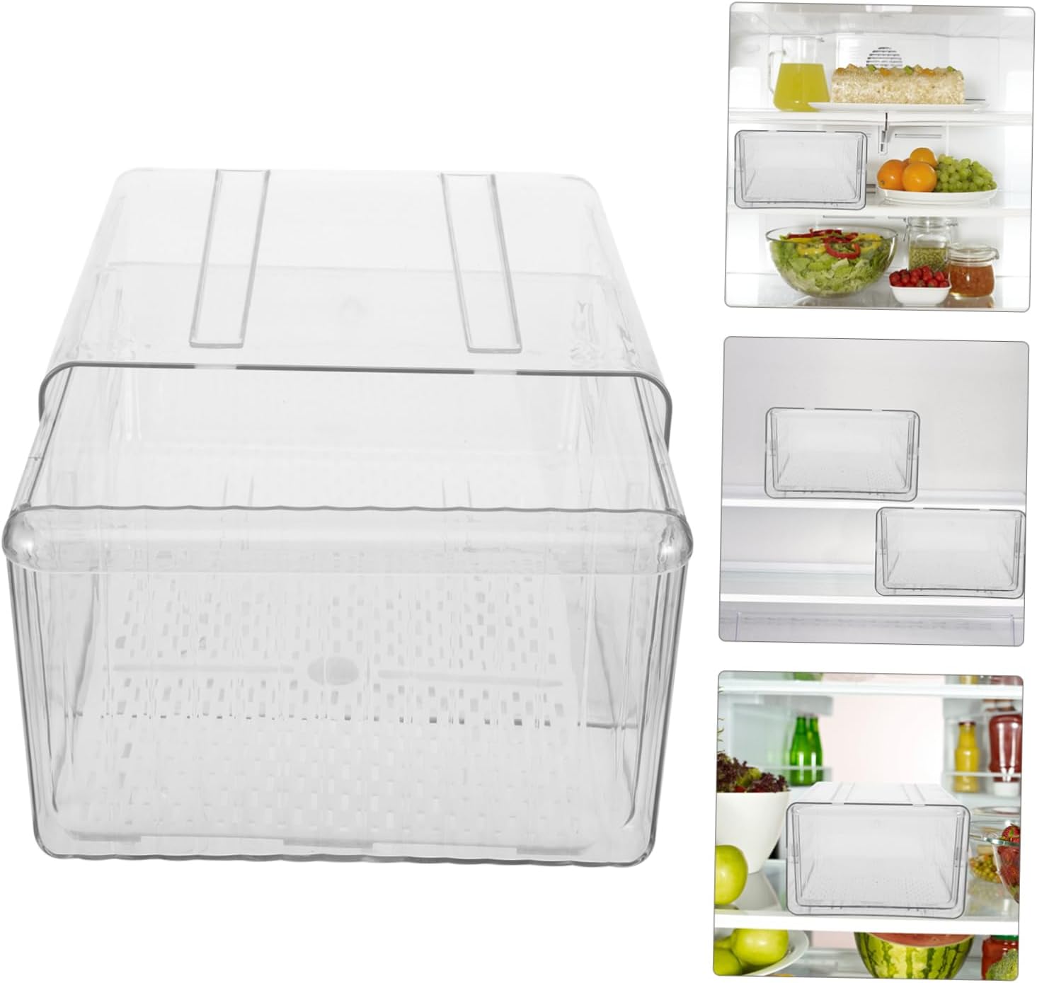 Refrigerator Storage Box Drawer Large Capacity Fruit Storage Containers Stackable Bin Lid Easy to Clean