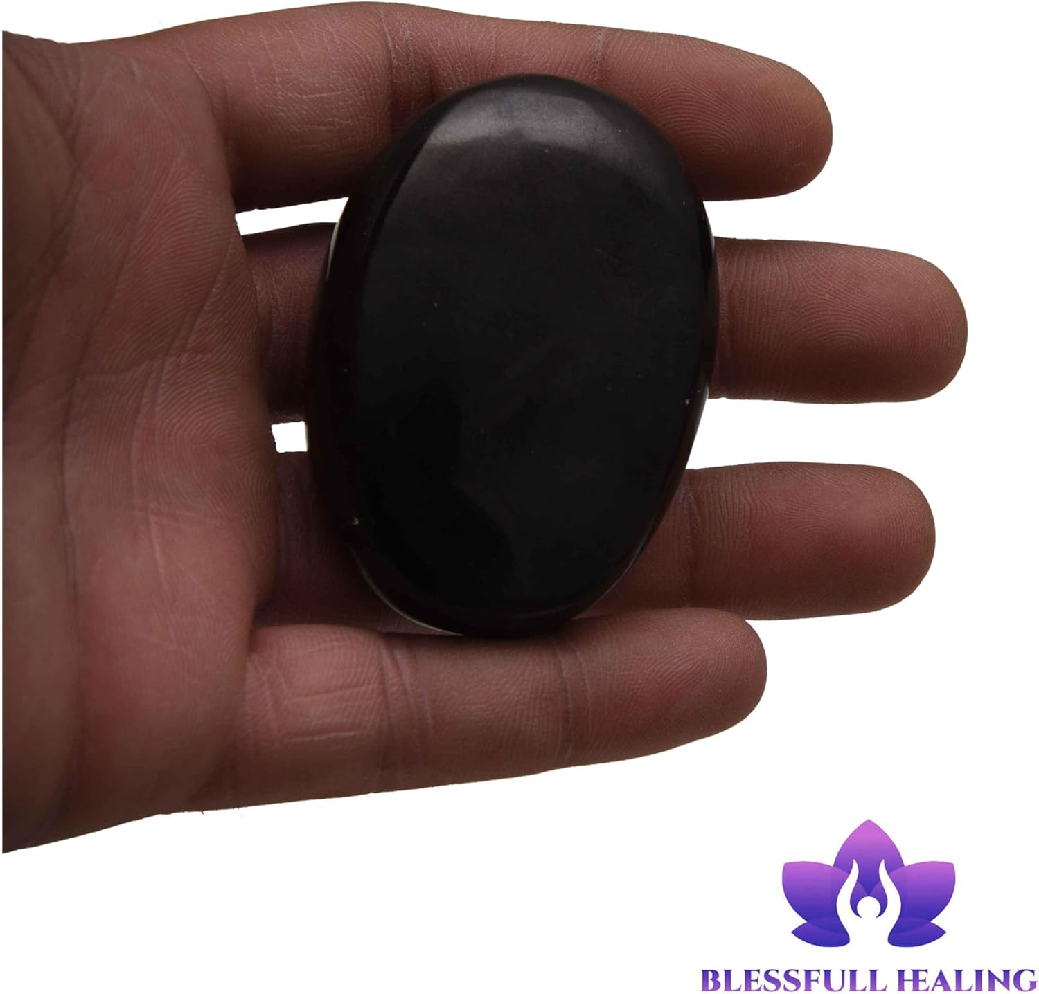 * Beautiful Black Obsidian Oval Shape Worry Crystal Healing Palm Pocket Stone.* Stone :-Black Obsidian* Color :-Black* Size :- Long :-2.3" to 3 "(60mm to 80mm) (Approx), Wide :-1.5" to 2"(40mm to 50mm) (Approx)* P.S: We have mentioned approx size but size may vary in length and width. (These are natural stones, so the product you might receive can be slightly vary from the image.) Random 1 Gift Pouch