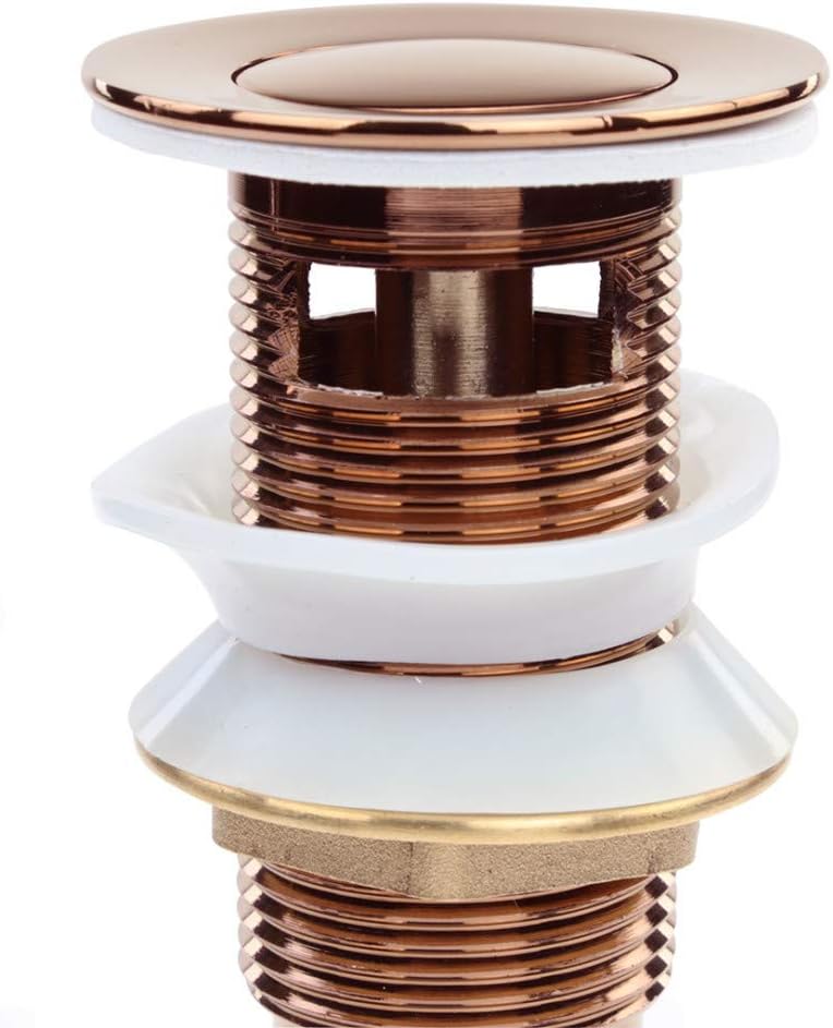 Renovators Supply Manufacturing Rose Gold Pop Up Sink Drain with Overflow Standard 1 1/4" OD Pipe and fits 1 3/4" Drain Hole Openings. Long Lasting, designed and finished to match Rose Gold Faucets, Push Down Drain Pops Ups "Pop-Up" Drain.