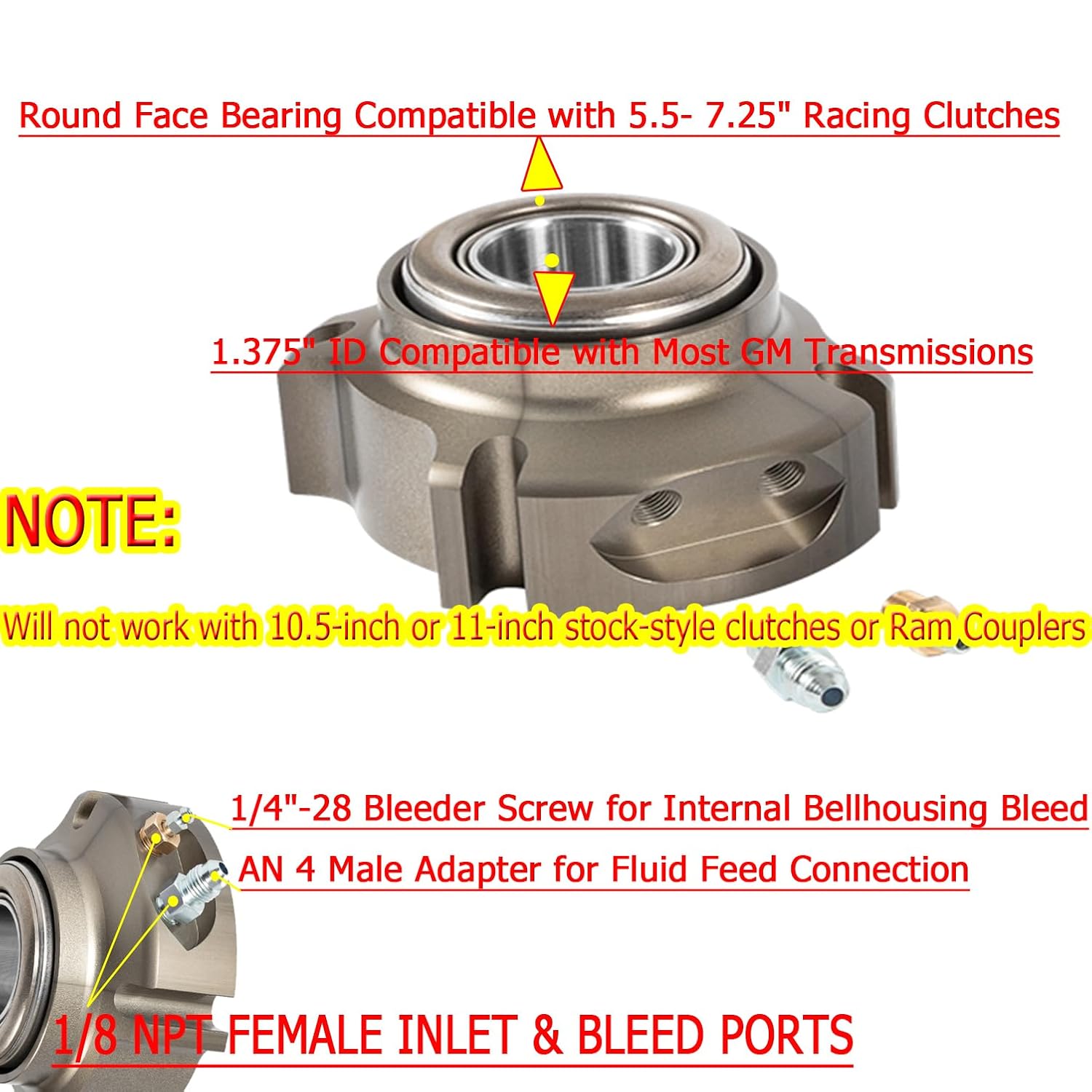 Replace for 91605135 Chevy Hydraulic Throwout Bearing Kit for GM Racing Transmissions, Low Pedal Effort, For 5.5 to 7.25-Inch Racing Clutches