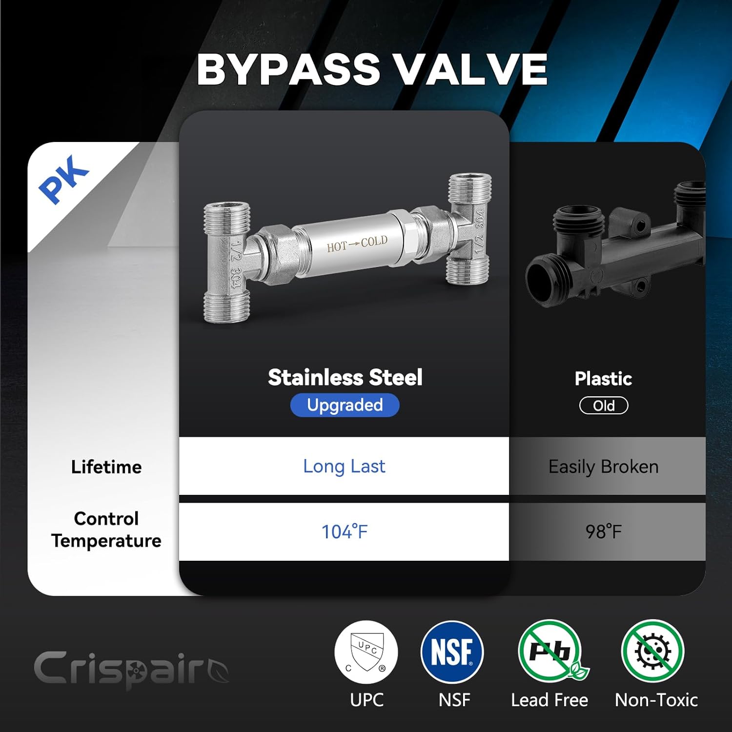 | Included Components | adapters with rubber washers, plumber tape, thermal sensor valve, two 20-inch supply lines (3/8" Comp x 1/2" FIP) |