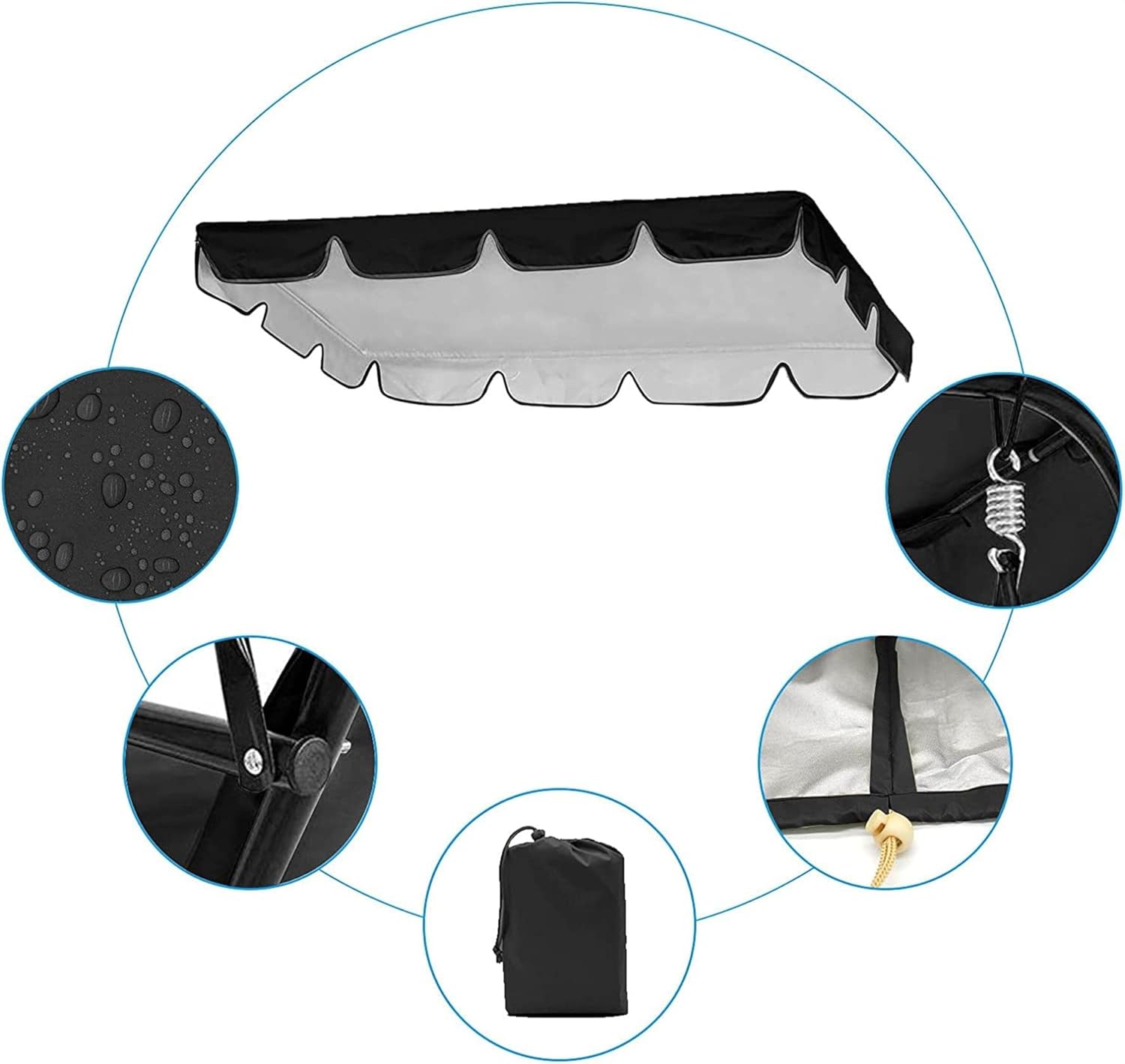 Replacement Awning Rain Outdoor Courtyard Cover Cover Swing Ceiling Cloth Patio & Garden Couch Cover Holder[Durable material] Our swing is made of silver-plated fabric. It has snow, frost, sunlight, rain and functions. It has good durability and does not require frequent maintenance. It can help you and your friends. The family brings the perfect outdoor leisure experience.[Occasion] Courtyard, outdoor, sun protection. Can be used a replacement cloth for your swing coverMaterial: 210D silver coated cloth[Easy to clean] This ceiling is very easy to clean. If there is bird droppings and leaf , you don't need to worry. Just brush it off with a brush, and then dry it in the sun. Easy to move and disassemble. It is convenient to replace the old swing .[Sturdy and durable] This swing canopy is equipped with 4 reinforced corners, which can firmly support the top of the swing, not easy to tear, and not easy to be blown away by strong winds. Please rest assured.Color: black, red, gray, green, coffee, beige, dark greenSize: 249x185x18cm / 98×73×7inches1×Swing shade cloth replacement cloth[Widely used] The garden swing is used for sun protection and rain protection. It is very suitable for socializing with friends or spending summers with family. It is suitable for relaxation, reading, picnics, outdoor open-air rooms, lawns, courtyards and other places.