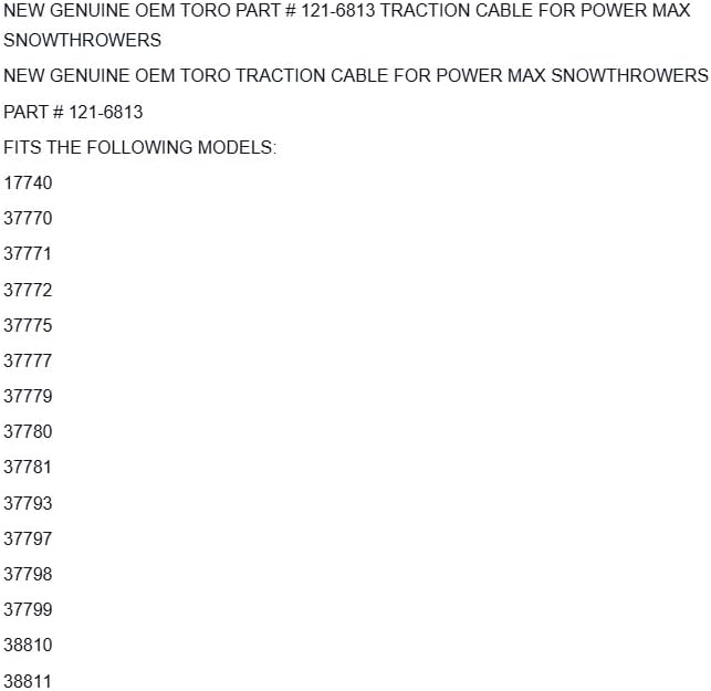 Replacement for TORO GENUINE PART # 121-6813 TRACTION CABLE FOR SNOWTHROWERS OEM