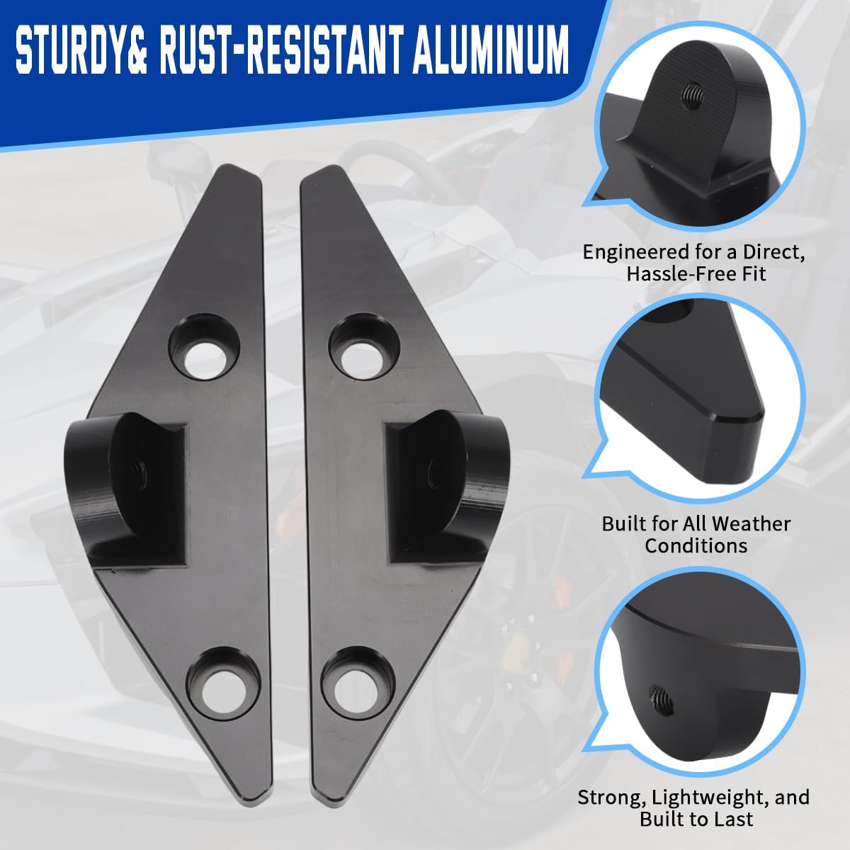 Type: Replacement Mounting Brackets Fitment:For Polaris Slingshot(2015-2025) Material:Aluminum Quantity:2pcs