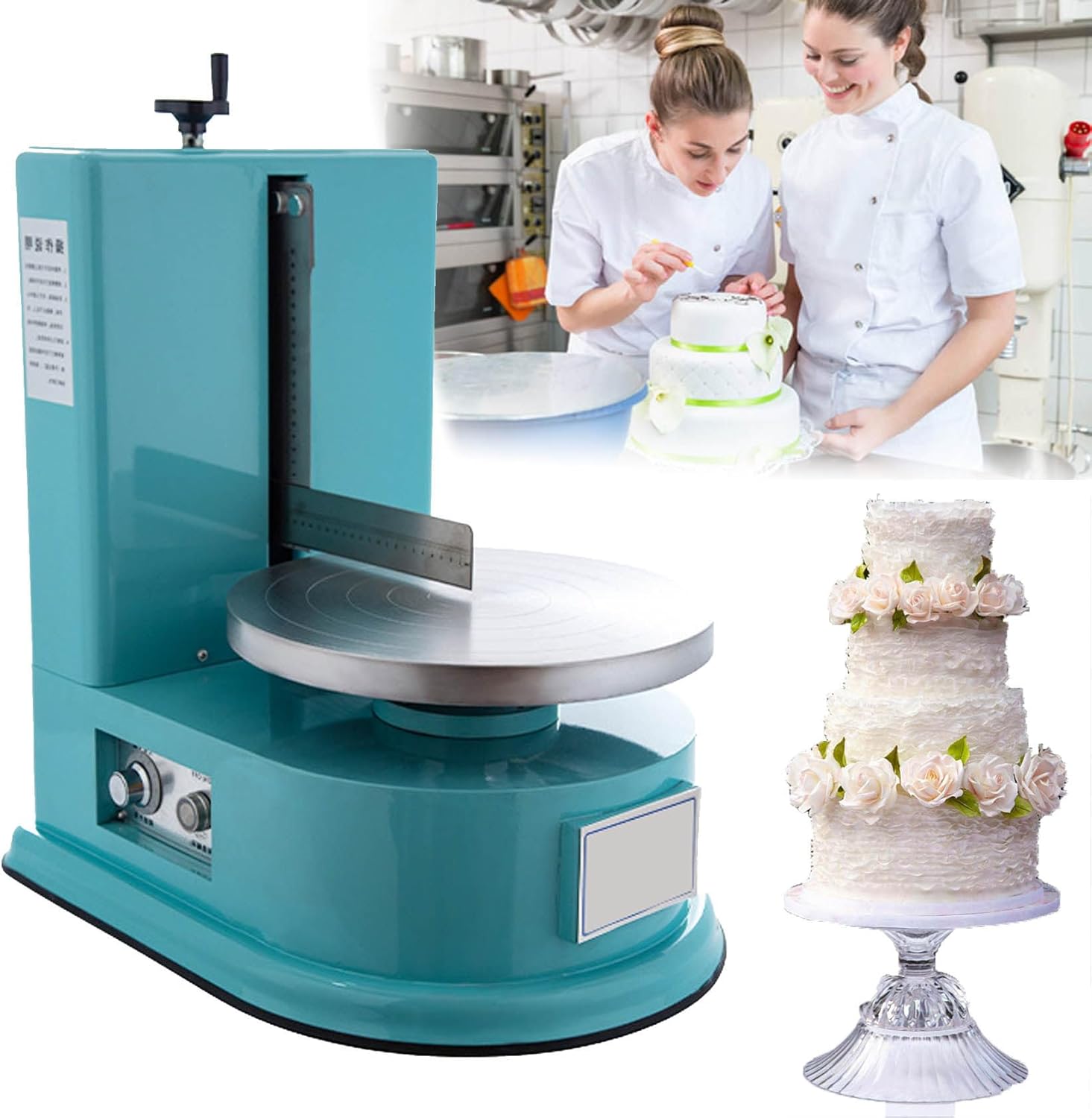 Advantage of cake cream spreading machine:●Can make 4 inches, 6 inches, 8 inches, 10 inches, 12 inches; cake size in diameter and height is adjustable;●The machine is portable, saves time and labor, and is easy to clean;●The cake made is smooth and beautiful;●Suitable for cake shops, dessert shops, food shops and households, etcSpecification:Name: Cake Cream Spreading MachinePower:80WVoltage: AC110V/60Hz or AC220V/50HzProduct size: 40*58*53cmNet weight: 23kgCake diameter: 4-12inchRotary table material: aluminum alloySpatula material: 304 stainless steelNotice: the size of cake can be 4-12inch in diameter and the position of vertical scraper can be adjust lift and right according the size of cake.