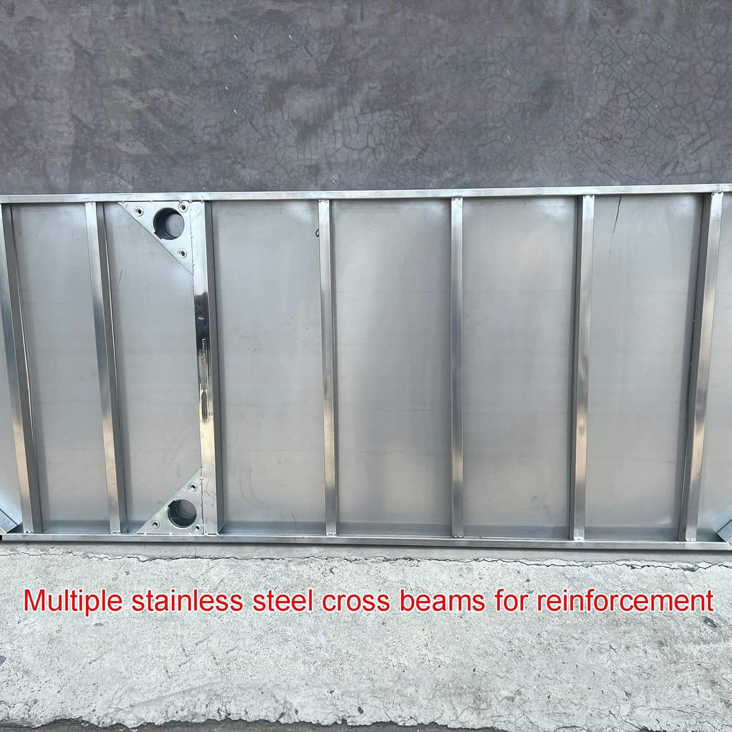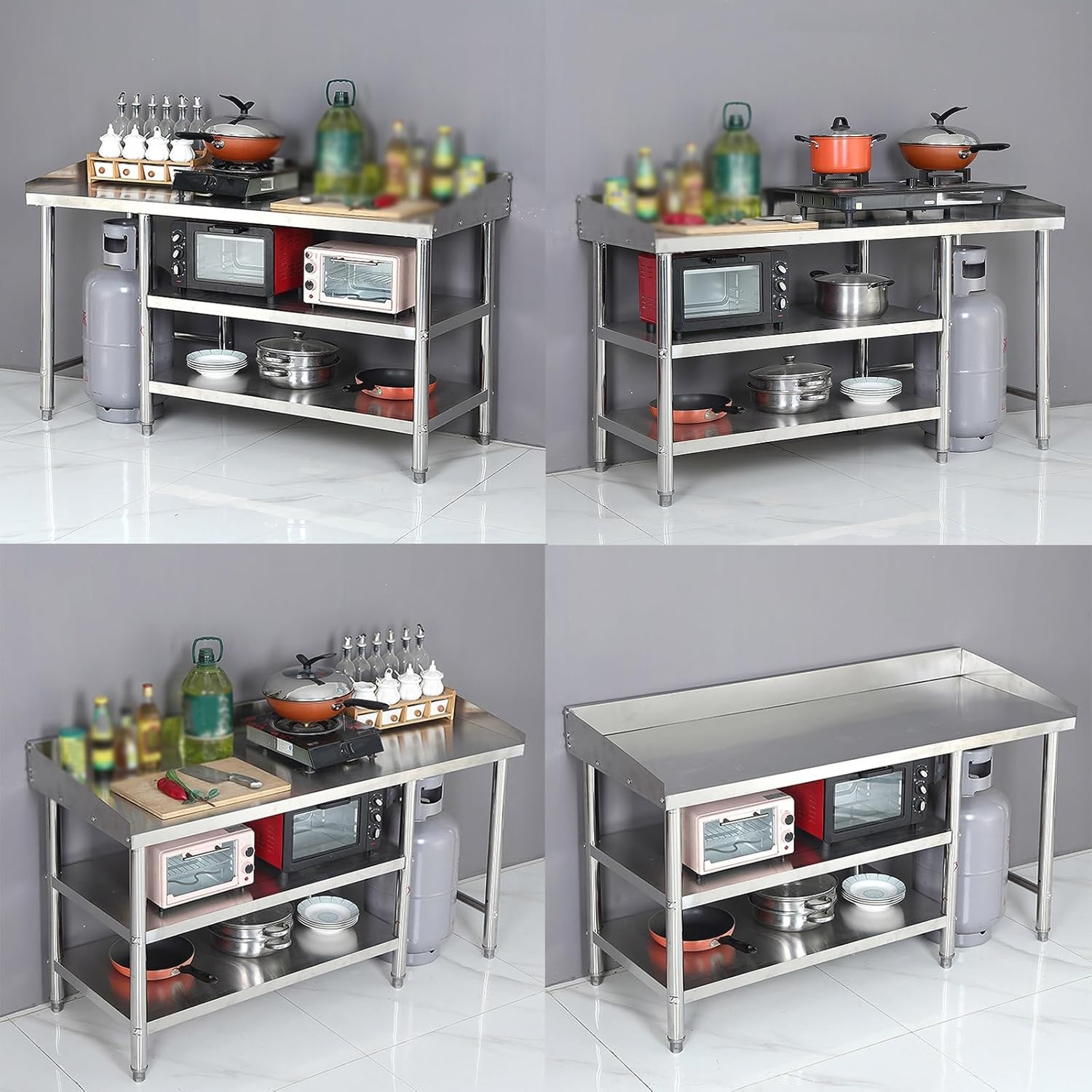 The base of this workbench is reinforced with multiple stainless steel crossbeams to enhance load-bearing and avoids deformation. It is secured with triangular three-screw fasteners for added stability.Name: Stainless Steel Workbench Material: Stainless Steel Color: Silver Dimensions: 100x50x80 centimeters / 39.4x19.7x31.5 inches 110x50x80 centimeters / 43.3x19.7x31.5 inches120x50x80 centimeters / 47.2x19.7x31.5 inches 130x50x80 centimeters / 51.2x19.7x31.5 inches 140x50x80 centimeters / 55.1x19.7x31.5 inches Suitable for: Kitchens/Hotels/RestaurantsContents: Workbench x1Easy to useAssembly and disassembly are both very simple, saving time and effort.Important notes1. Due to manual measurement, there may be slight variations in dimensions.2. Due to different shooting angles or lighting conditions, there may be slight color variations.3. Due to the stainless steel material, there may be slight scratches and weld marks.