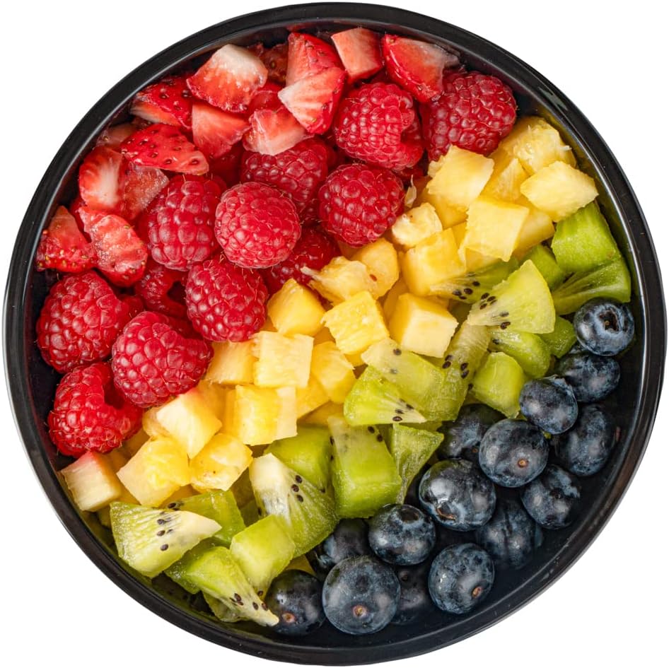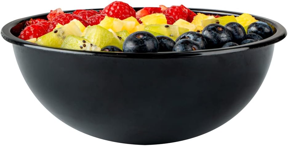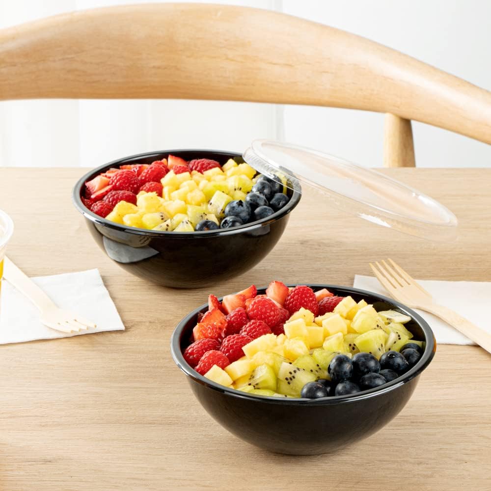 Serve fresh salads with our 18-ounce Round Black Plastic Salad Bowls. Crafted from high-quality plastic, these plastic salad bowls feature sturdy walls and a strong base to support hefty portions of salad, pasta, or mixed vegetables. Their round shape instantly brings a traditional look to table settings, while their black finish effortlessly completes the look of any dish. Coordinate these black salad bowls with our clear lids (SKU: RWP0206C) to prevent messes during take out or delivery services. These disposable serving bowls are conveniently recyclable to streamline your cleaning process at your cafeteria, buffet, restaurant, or other foodservice establishment. Containing up to 17.6 ounces, these plastic bowls measure 6 inches in diameter by 2.5 inches in height. Sold in a 200 count box. Clear lids are available and sold separately