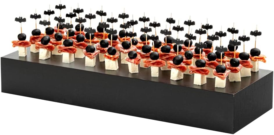 Take your presentations to new heights with our Cater Tek Rectangle Black Bamboo Medium Riser. This food display riser puts the spotlight on your samples, appetizers, desserts, and hors d'oeuvres. The rectangular design of this wooden table top riser allows you to arrange your dishes in elegant rows to avoid a cluttered presentation. Equipped with 4 built-in sides, this rectangular riser provides a steady balance on any table to keep your dishes in place. The bamboo construction of this table display riser is shatterproof and chip-resistant, perfect for daily use in a buffet, candy shop, bakery, catering business, or restaurant. Featuring a sleek black finish, this candy buffet display riser makes your products stand out to catch the eye of any guest. This retail display riser measures 20.5 inches in length by 7 inches in width by 7 inches in height. Sold in a 1 count box.