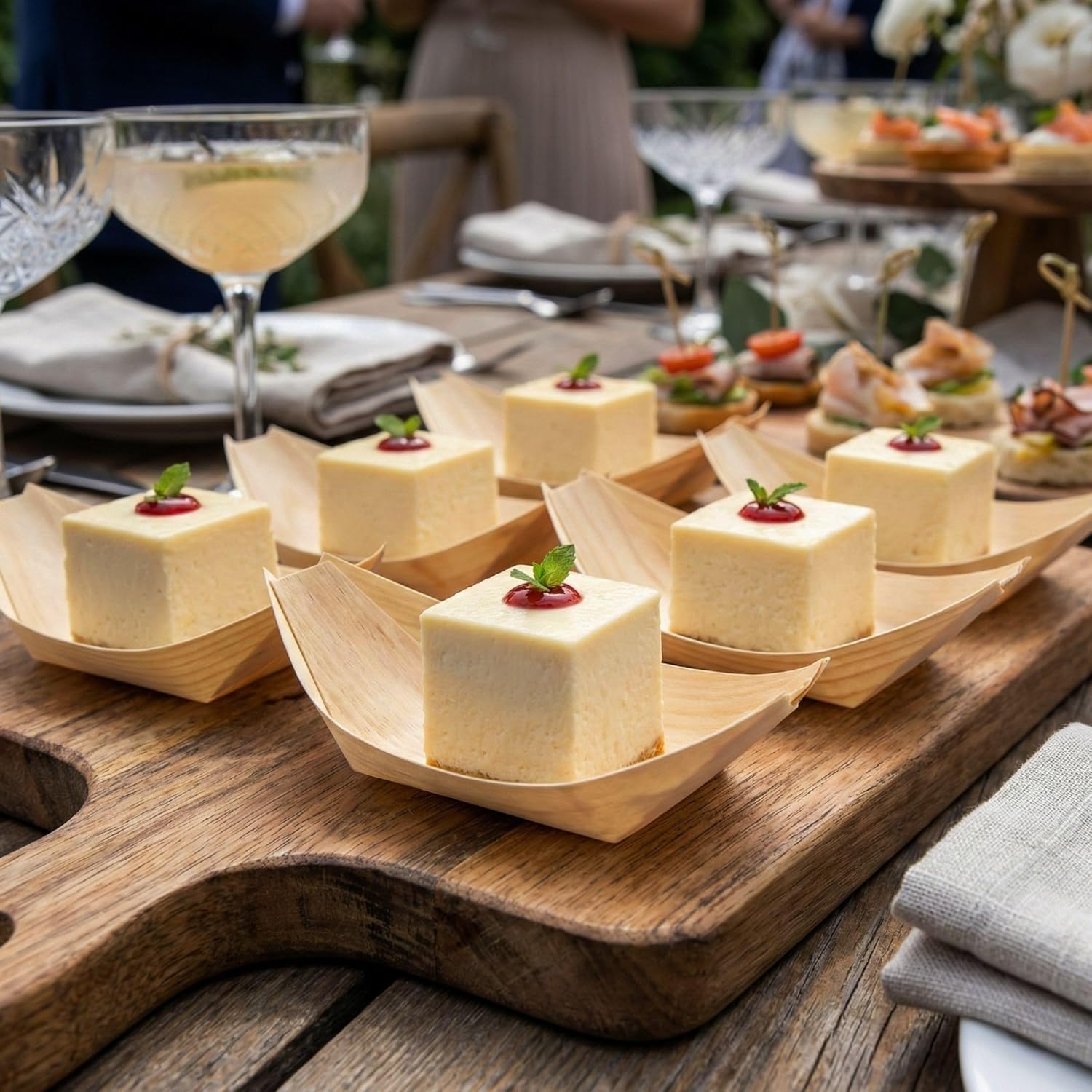 Infuse rustic elegance in your bakery, restaurant, or foodservice setup with our Taipei Natural Pinewood Small Food Tray / Boats. With their sturdy pinewood construction, these pinewood boats are durable, providing a reliable foundation for your servings. Offering streamlined cleanup with these disposable small boats that are perfect for expedient events. The wood grain pattern of these mini food boats carries an earthy charm, subtly improving your decor. Built for stability, these sustainable food boats are suitable for serving all kinds of foods, from pastries to salads. Measuring 4.5 inches in length by 2.5 inches in width, these pinewood food boats present ample space to serve generous portions while maintaining aesthetic appeal. Shipped in a 200 count box.