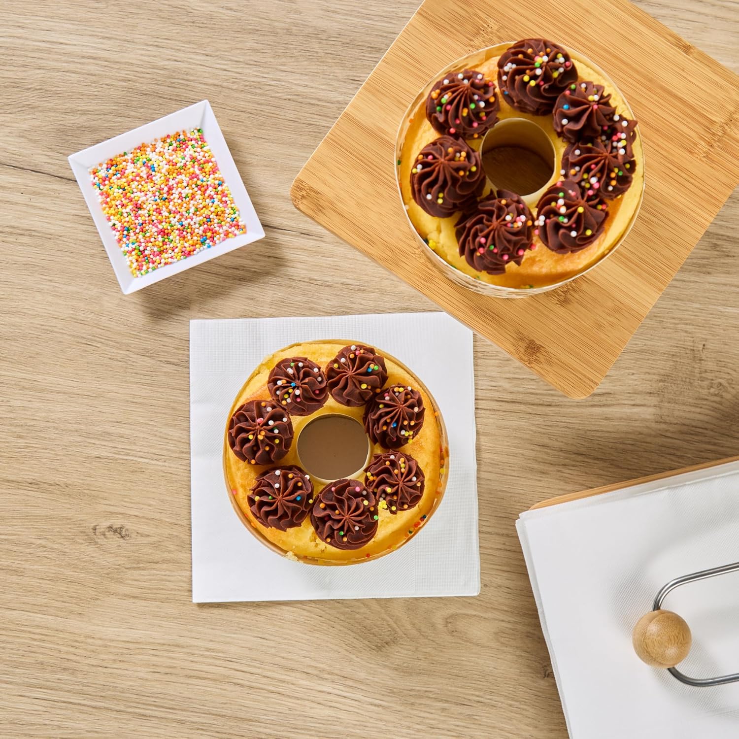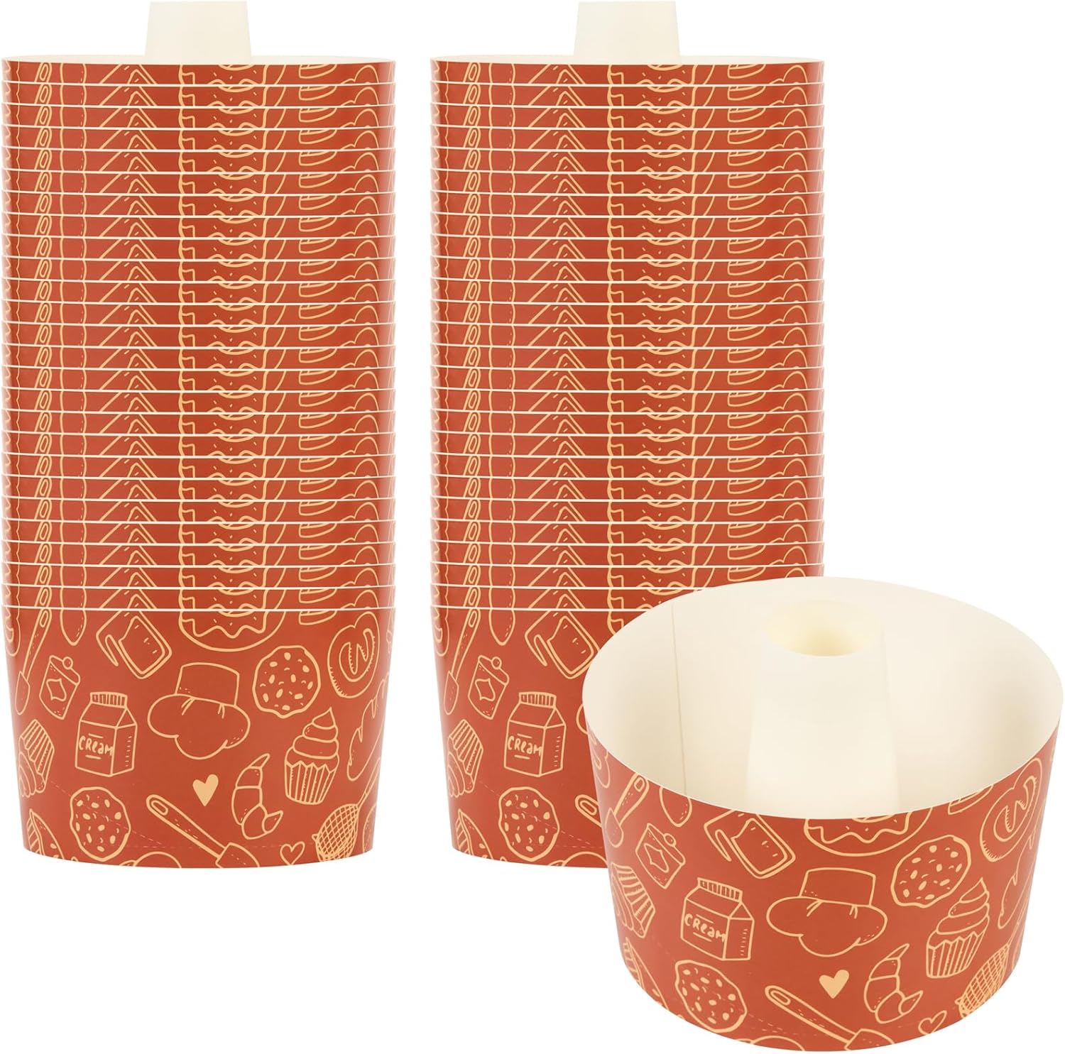 Ensure flawless baking with the Panificio Greaseproof Disposable Baking Pan. Crafted from cream-colored paper, this 4.5-inch by 4.5-inch disposable baking pan is designed for oven-safe use, making it perfect for crafting individual tube cakes with ease. Its innovative greaseproof lining maintains the freshness and visual appeal of your cakes, a must-have feature for any foodservice operation looking to impress with their presentation. Ideal for both hot and cold applications, the oven-safe paper pan withstands temperatures from freezer to oven, ensuring versatile use without compromising on quality. Simplify your cleanup process with this easy-to-dispose-of solution, enhancing operational efficiency. Embrace a sustainable and efficient kitchen with this essential baking accessory. Each order includes 100 Panificio Greaseproof Disposable Angel Food Tube Baking Pans.