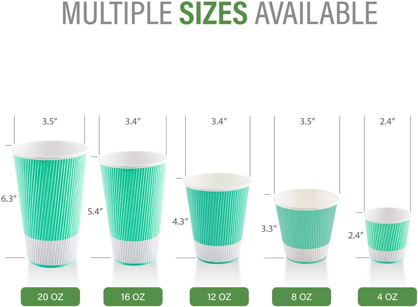 Instantly upgrade your drink presentations using our Restpresso 20-ounce Light Green Paper Coffee Cups. Perfect for serving hot drinks without coffee sleeves, these disposable coffee cups have a ripple wall that avoids your customers from burning their hands when enjoying warm beverages. Plus, the insulated design of these corrugated beverage cups preserves the temperature of hot drinks to ensure your guests' first sip is as warm as their last. Featuring a light green finish, these 20-ounce hot cups instantly draw guests' attention to beverages served at your cafe, coffee shop, restaurant, or other foodservice establishments. Made from premium paper, these ribbed coffee cups have a sustainable message on the bottom of each cup to remind customers and employees to dispose of cups in a responsible way after use. These ripple insulated coffee cups have a rolled rim that provides you with a secure way to seal them with our Restpresso coordinating coffee cup lids to avoid accidental spills. Featuring a sustainable message at the bottom, these insulated coffee cups are crafted to encourage mindful disposal. Containing up to 20 ounces, these ripple wall tea cups measure 3.5 inches in diameter by 6.3 inches in height. Sold in a 250 count box. Lids are available and sold separately. NOTE: Twist and turn for smooth and easy cup removal from the stack.