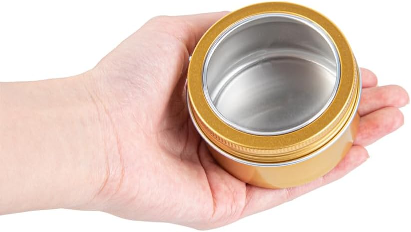 Keep your nails and hooks organized using our Base 4-ounce Round Gold Tin Containers. The premium construction of these aluminum storage boxes lets them stay durable without rusting. To secure your contents during transit, these storage containers come with a screwable lid that has a clear window made of PVC plastic. With a compact, lightweight design, use these containers with lids to store spices in kitchen without taking up storage space. The gold shade of these airtight containers elevates the look of the contents inside. Each of these decorative storage boxes measures 2.7 inches in diameter by 1.7 inches in height with a capacity of 4 ounces. Sold in a 100 count box.