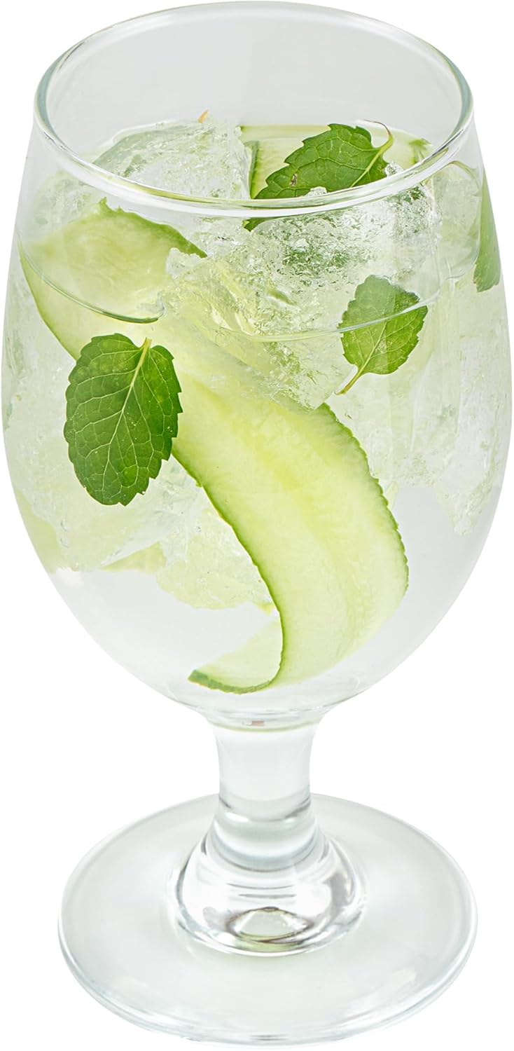 Elevate your beverage service with our Vetri 14-ounce Water Goblet Glasses. With a crystal-clear finish, these drinking glasses expertly display your effervescent brews, creating an unforgettable presentation. These wine glasses have a comfortable opening at the top, allowing drinkers to savor every sip, making them ideal for any occasion. The thick stem of these cocktail glasses ensures optimal stability on trays, countertops, and tables. These water glasses are designed with a robust foot and minimize the risk of toppling over, effectively reducing the chances of spills. Crafted from durable soda lime glass that does not contain lead, these beverage glasses withstand regular use while maintaining their pristine appearance. Dishwashable for convenience, these bar glasses provide a simplified cleaning for easy upkeep and maintenance. These glass goblets measure 2.72 inches in diameter by 6.5 inches in height and can hold up to 14 ounces. Sold in a 6 count box.