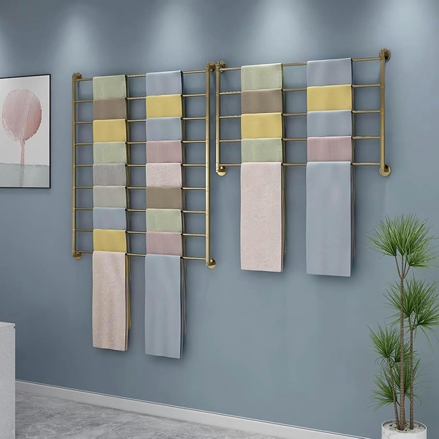 • MULTIPLE PURPOSES: This wall display rack are designed for both domestic use and commercial use. It can store towels, scarves, silk scarves, shawls, ties, neckerchief, etc. Retail stores can use it to display fabrics, cloths, wrappers, belts, ribbons, and so on.