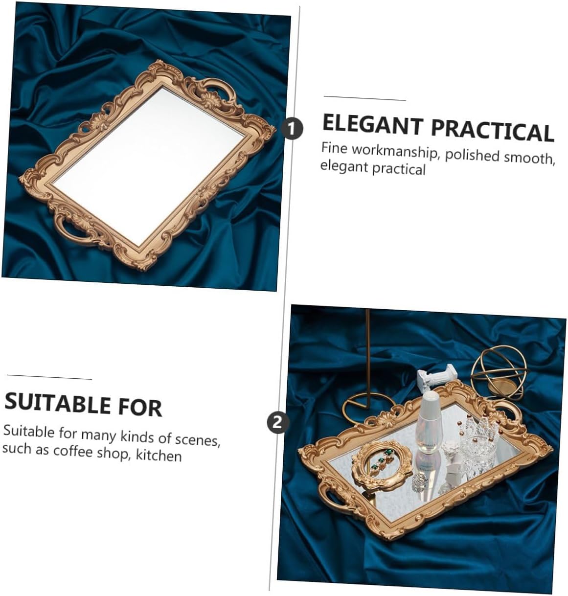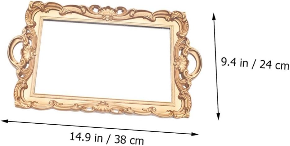 Package List 1 Characteristics - Material: plastic Cosmetic Storage Tray. - Size: 39.00X24.00X2.00cm/15.33X9.43X0.79in Mirror Plate -Product Info:Mirror tray props - Color: golden Household Storage Tray. - The retro European decorative storage tray, very textured Perfume Storage Organizer. - Fine workmanship, polished smooth, elegant practical Retro Makeup Tray. - material, safe and also decorative for you to use Home Storage Plate. - Suitable for many kinds of scenes, such as coffee shop, kitchen, living room table, birthday party, etc Room Decor Tray. - Whether as a photo props or home furnishings are very appropriate Cosmetics Storage Plate.Goods DescriptionRetro Storage Plate With the design of European retro mirror.Perfume Storage Organizer Are you looking for a decorative and practical storage tray? Our product can meet all your needs.Mirror Plate It is widely used for dining table, kitchen, bathroom and other places.Cosmetics Storage Plate Very fashionable and chic