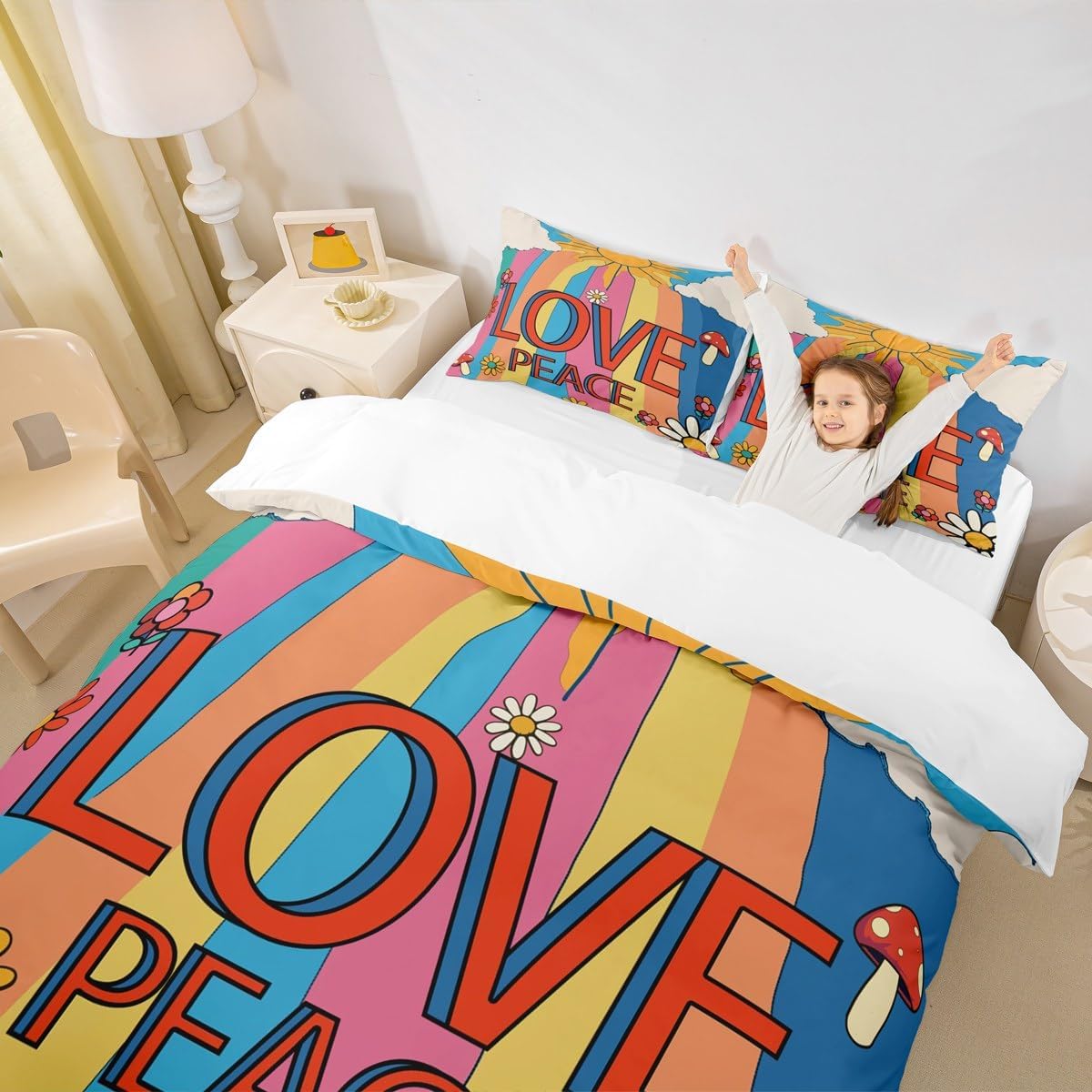The good bedding shouldn’t just give you a better night sleep, it should also match your home decor seamlessly; the good combination of functionality and comfort, with striking unique designs, our bedding set are the bedding of your dreams; made from polyester and 3d printed with the latest technology, the duvet cover and pillow shams set will transform your bedroom, and help you sleep as a baby What makes our bedding so unique We specialized in home textile and we are contribute to provide better product; our unique 3d print patterns design duvet cover set collection will create a serene sleeping experience, leaving you feeling refreshed and rejuvenated Unique designs, we offer a wide selection of 3d printed designs, like gaming, tie dye,animal, ocean beach theme etc; vivid colors and unique designs match well with your all other decor accessories 100 percent brushed microfiber fabric is breathable, soft with a high tensile strength which making it feel like you’re being gently cuddled when you sleep inside them Easy to care for: Machine wash in cold and dries quick on tumble dry low Range of sizes Twin size 1 duvet cover: 68 inch x 90 inch 1 pillow sham:20 inch x 30 inch Full size 1 duvet cover: 79 inch x 91 inch 2 pillow shams: 20 inch x 30 inch Queen size 1 duvet cover: 90 inch x 90 inch 2 pillow shams: 20 inch x 30 inch King size 1 duvet cover: 104 inch x 90 inch 2 pillow shams: 20 inch x 36 inch Choose us and transform your bedroom and sleeping experience