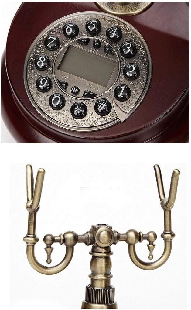 Name: Fixed telephone.Material: solid wood + metal.Dimensions: Height: 20cm* Base diameter: 17cm* Handle length: 25cm.Other: There is a caller ID.Telephone category: Wired telephone.Run: Connect a fixed phone line.Style: vintage craftsmanship.Suitable for placement: suitable for homes, offices, luxury star hotels, galleries, shops, etc. Warranty & Support Feedback