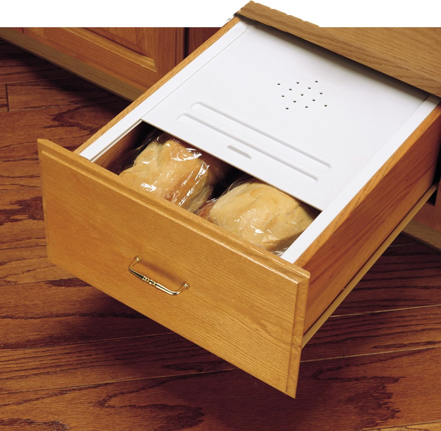 The BDC Series is available in white, almond, or translucent finishes. The (2) sizes can be trimmed to accommodate any drawer dimension. The Bread Drawer Cover Kit contains a one-piece cover with molded handle and rear stop, adjustable sliding rails, and mounting screws.