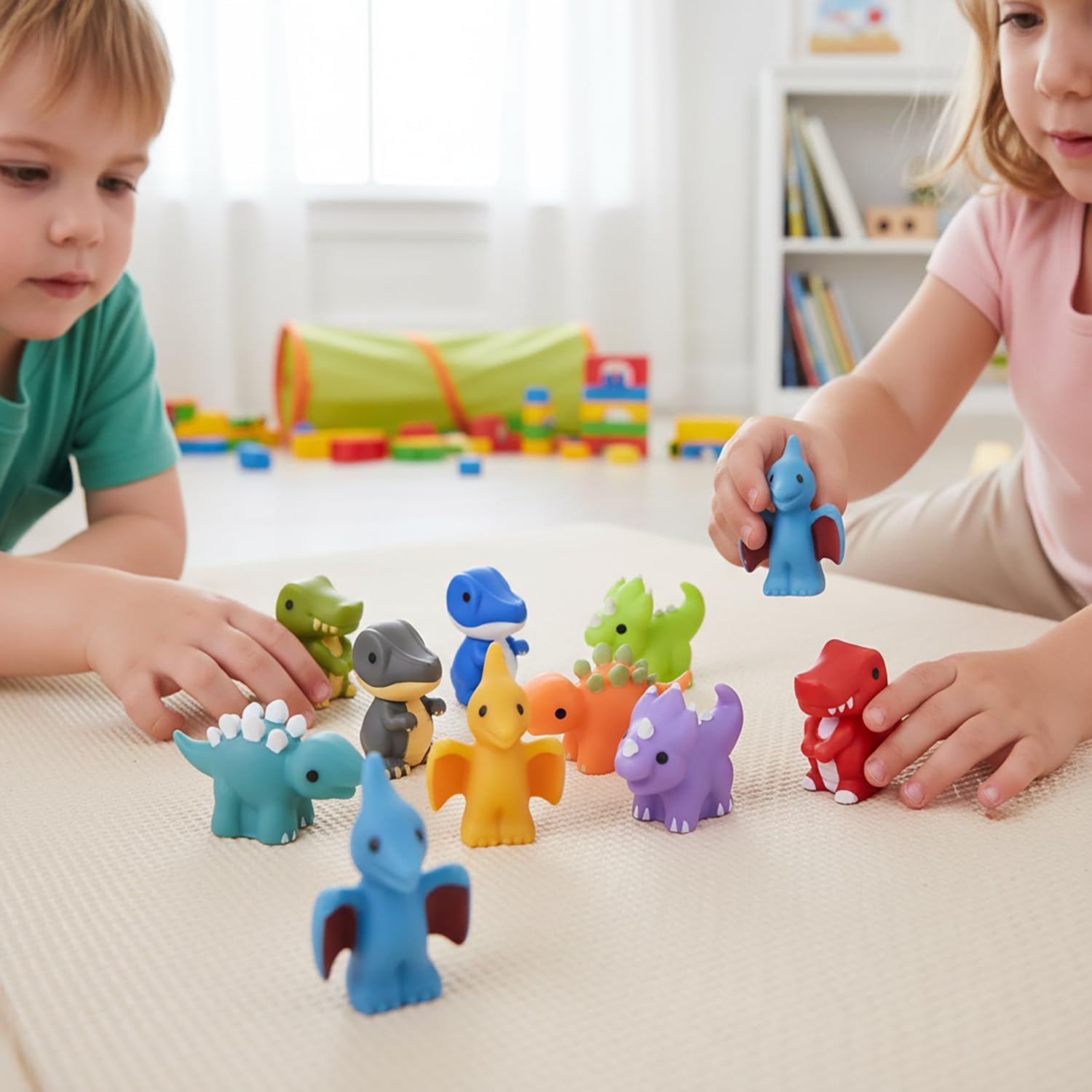 Mini rubber dinosaurs with unique designs | Great small crane prize options | Assorted styles | 50 pieces sold in a poly bag | Ages 3+