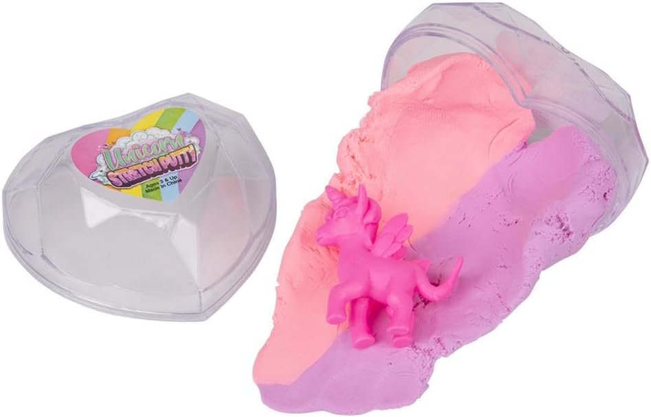 Bring magical fun to playtime with this 12 pack of 2.5 inch unicorn stretch putty. Each container includes soft, pliable putty in assorted colors with a whimsical unicorn figure inside, offering a delightful sensory experience. Kids can stretch, squish, and mold the putty while engaging their imagination and developing fine motor skills. The 2.75 inch containers are compact and easy to store, making them ideal for party favors, classroom rewards, or everyday entertainment. With vibrant colors and a fantasy theme, this putty set provides a mess-free way to enjoy tactile play. Each unit is sealed for freshness and ready to use.