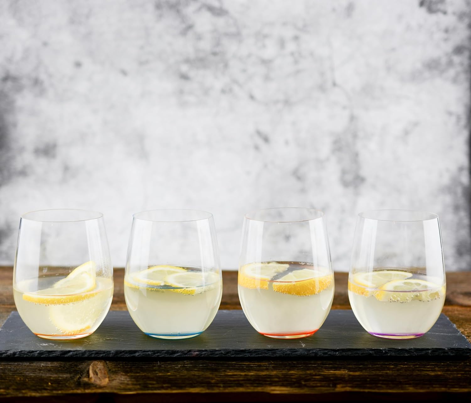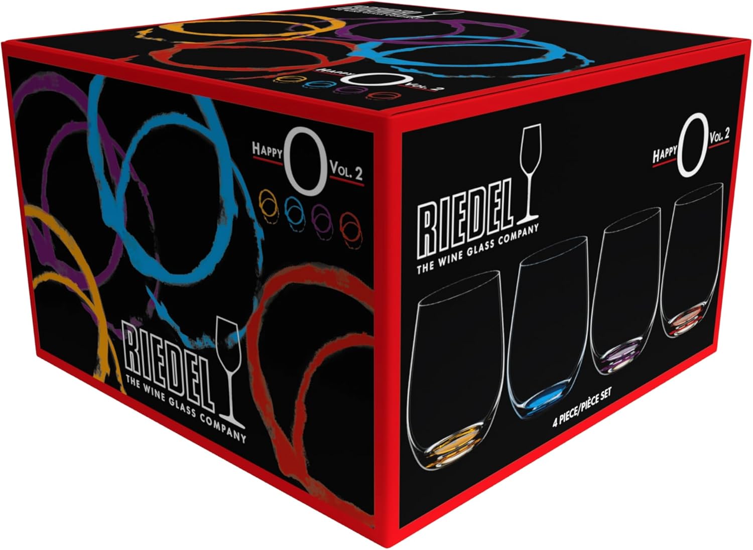 This set contains 4 pieces O wine tumbler happy O Vol 2. In 2017 Riedel expanded the existing collection by four more colors: azure-blue, Violet, cinnabar Red and orange. The handy machine-made soft drink glass of the space-saving glass collection O wine tumbler spreads a good mood With its steamless design and the colorful base. The innovative design makes it less susceptible to glass breakage and easy to put into the dishwasher. "O" Is the ideal glass for everyday use and for every occasion. It is fun, feels good to hold, looks trendy and it works! All Riedel glasses are dishwasher safe.