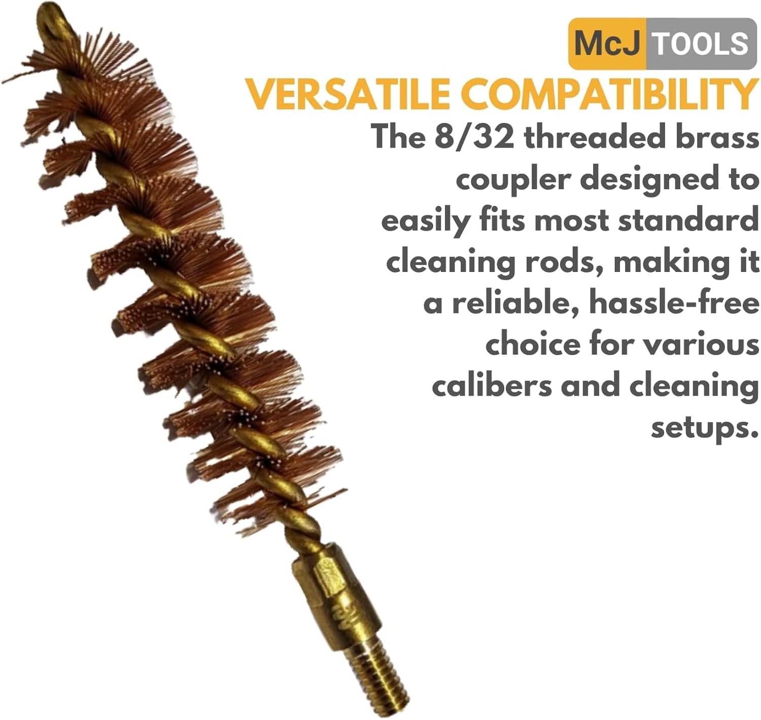 McJ Tools 10pack Bronze Bore Brushes with Looped Brass Core are designed to meet or exceed military specifications, thus to satisfy the shooter who wants the best tools to maintain his or her guns. All brushes are 8-32 threaded brass coupler. Each brush contains the maximum number of bristles that can be inserted for the caliber. Bristles are made from high quality bronze, which is aggressive enough to scour away lead fouling, copper fouling, and power residue. it will not scratch or in any way harm the bore.