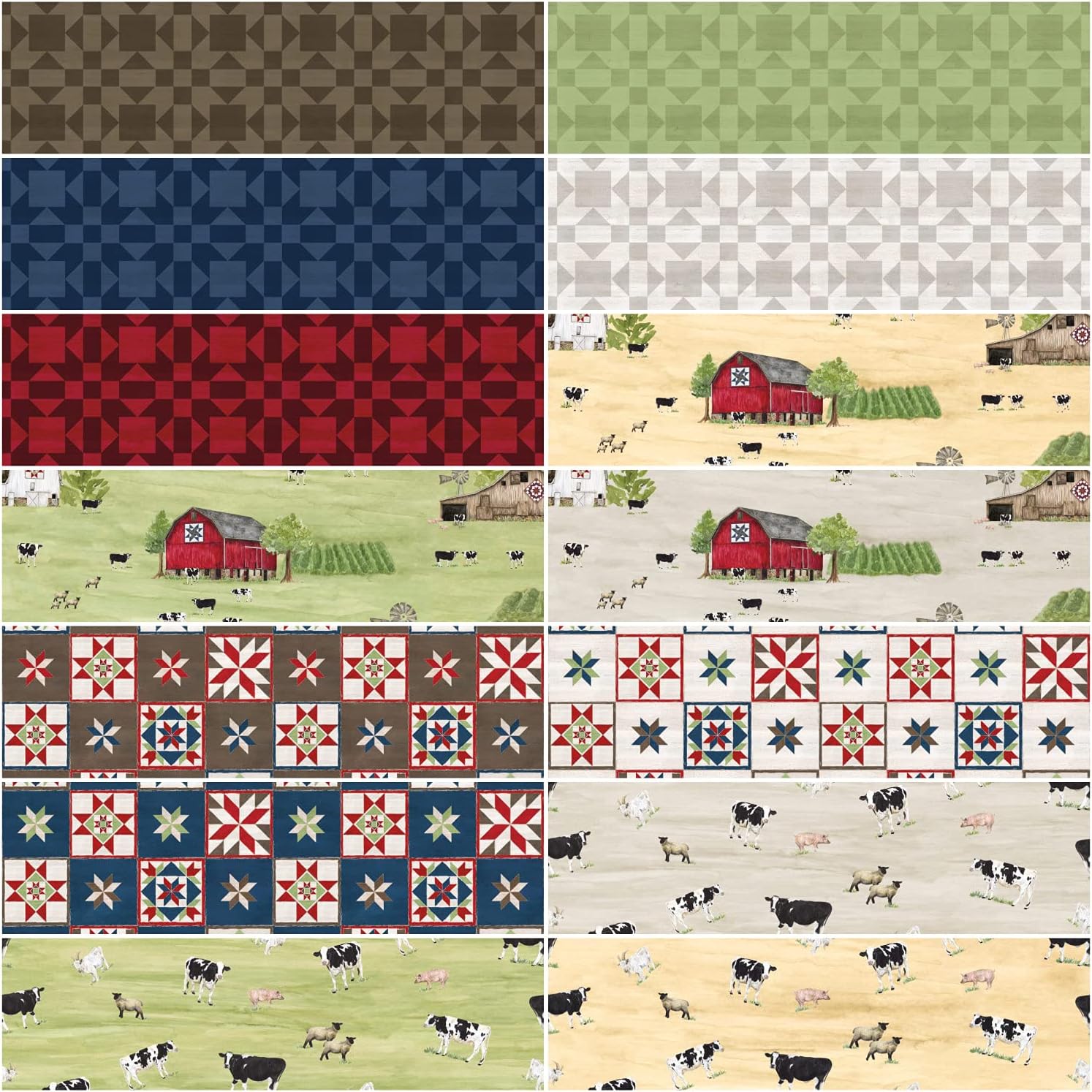 This package contains 14 pieces of 18x21-inch precut fabric strips from the Barn Quilts collection by Tara Reed for Riley Blake Designs. Fiber Content: 100% Cotton. Imported.