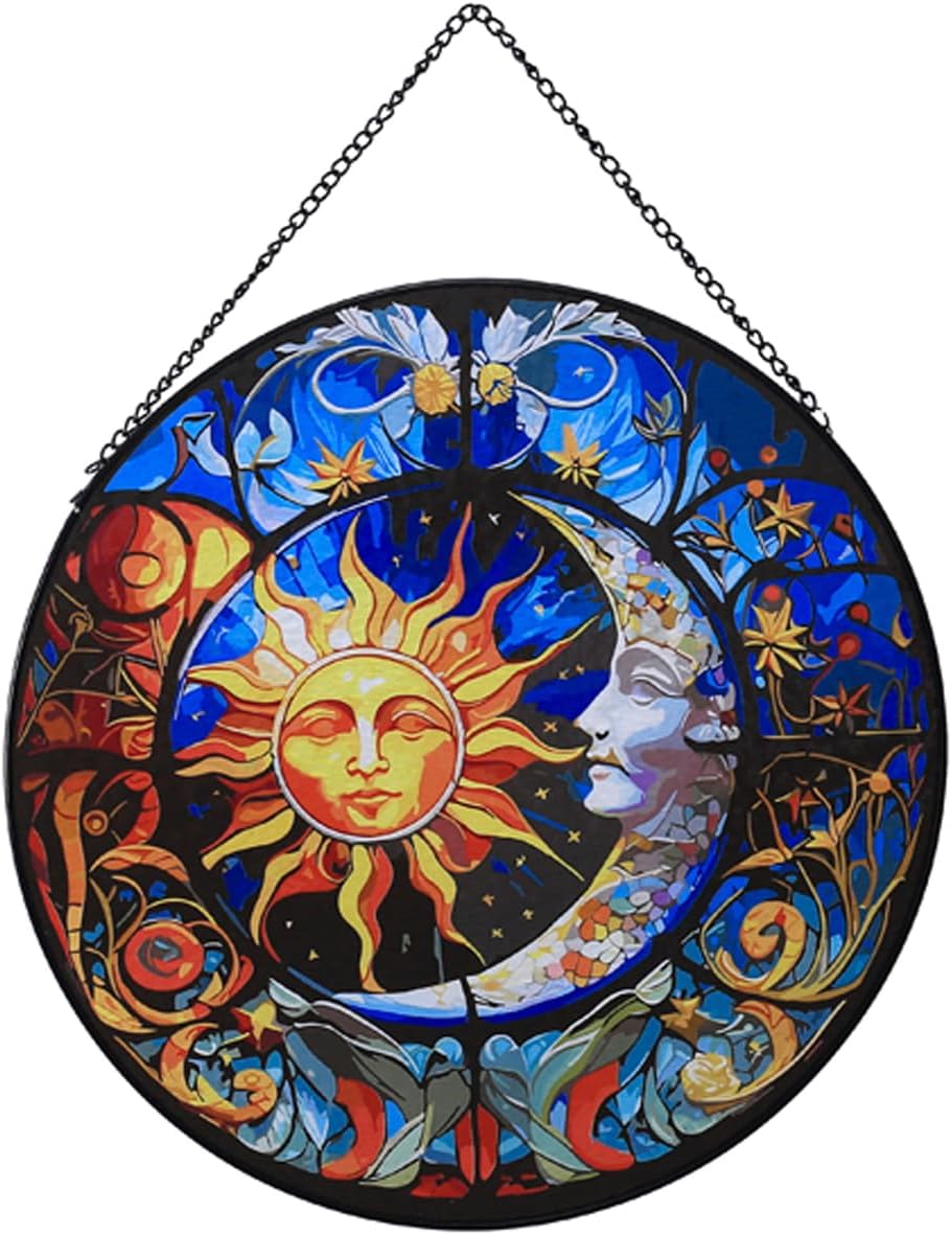 Use this River Dragonfly+Sun and Moon pattern stained glass suncatcher decoration as a warm gift to your family and friends! Features: Exquisitely Design Attractive and uniquely River Dragonfly+Sun and Moon pattern designed with a stained glass style,it is the best choice for home decoration. Hanging with Chain Comes with a metal chain for quick and easy hanging. Perfect Gift Ideas Can be used as Birthday present, Christmas gifts ,Mother's Day gifts, Valentine's Day gifts, Halloween gift, Thanksgiving gift, Easter gifts, New Year's gift,etc; A special gift for your friends, family, lover, etc. Specifications: Material: glass Size:20*20cm/7.87*7.87inch Weight:310g/0.68lb Chain Length: 34cm/13.4inch Package Include: 1 x River Dragonfly Stained Glass Suncatchers for Windows 1 x Sun and Moon Stained Glass Suncatchers for Windows Notice: 1. Manual measurement, please allow slight errors in size. 2. Due to the difference between monitor displays, the actual color may differ slightly from the image. 3.Any questions about our products, please feel free to send the e-mail to us via Amazon and we will reply within 24 hours.