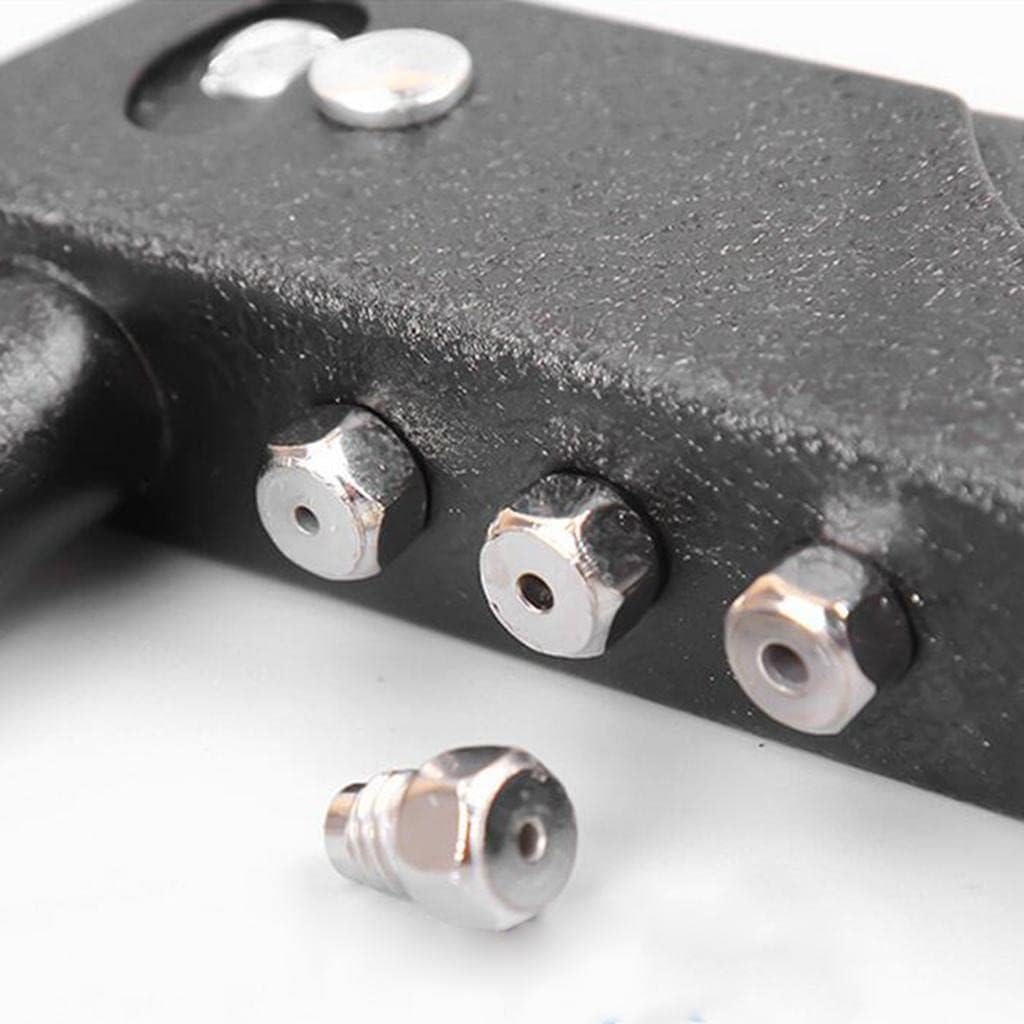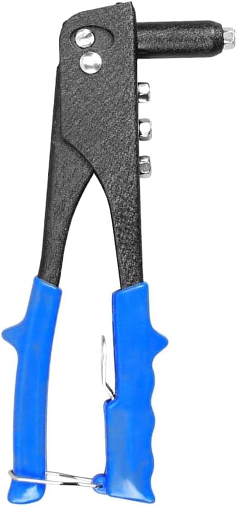 Description: - Hand riveter comes with 4 different sizes of rivets, in 3/32inch(2.4mm), 1/8inch(3.2mm), 5/32inch(4.0mm) and 3/16inch(4.8mm). - Durable black wrinkle finish; Rugged all-steel construction and the 2.7mm thick steel ensures long lifetime. - Nonslip cushioned handle grips, PVC coated handle material for maximum fit and comfort. - Rivet heads and wrench store in handle. - The rivet body is made of aluminum for protection against rust.Specification: - Material: Alloy - Color: As picture shown - Length: Approx. 23.5 cm / 9.25 inch - Width: Approx. 8.3 cm / 3.27 inch - Head Diameter: Approx. 1.78 cm / 0.7 inch - Head Thickness: Approx. 2.7 cm / 1.06 inch - Suitable for 2.4mm, 3.2mm, 4.0mm and 4.8mm Head Size, aluminum and stainless steel rivetsPackage Includes:1 Piece Rivet 4 Pieces Head(2.4mm, 3.2mm, 4.0mm and 4.8mm)10 Pieces 2.4mm Rivet10 Pieces 3.2mm Rivet10 Pieces 4.0mm Rivet10 Pieces 4.8mm Rivet