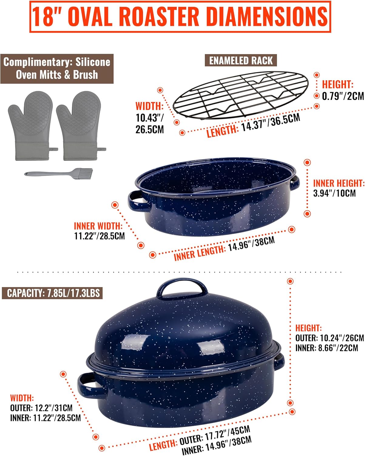 | Included Components | Dome Lid, Enamel rack, Roasting Pan, Silicon oil brush |