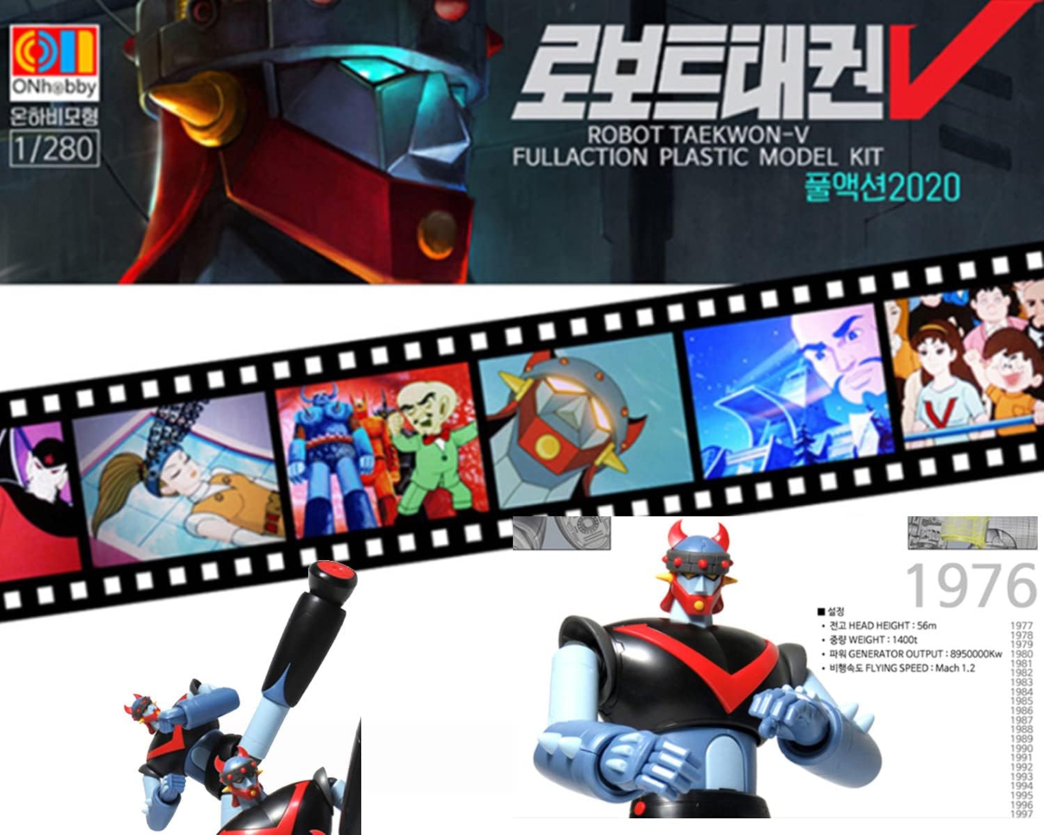 Robot Taekwon V Full action 20cm Plastic Model Kit, Taekwon V For Room Decor Christmas Limited Edition, Animation Color Onhobby, Model1/280