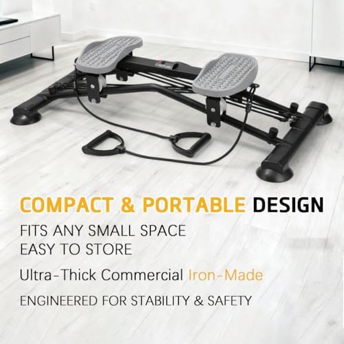 Experience a low-impact full-body workout with our innovative side-to-side rocking balance board. This versatile trainer effectively engages your legs, glutes, and core while being gentle on your knees and joints, making it ideal for users of all fitness levels. Designed for convenience, our compact motion trainer fits seamlessly into any room, apartment, or small home gym, ensuring you can work out without cluttering your space. The integrated digital tracker keeps you motivated by monitoring your workout time, step count, and estimated calories burned, helping you stay on track with your fitness goals. Perfect for those with busy schedules, this stepper machine requires no assembly, allowing you to dive into an efficient cardio and strength session in just 15-20 minutes. It's the ideal solution for busy adults and parents looking to maximize their workout time. With a sturdy design that supports up to 264 lbs, our portable balance trainer is perfect for a variety of users. Enjoy a hassle-free setup with our glute and core lateral rocking stepper – your workout can start the moment you unbox the machine. Elevate your fitness routine today with a product that combines functionality and ease, making it easier than ever to achieve your health and wellness goals.
