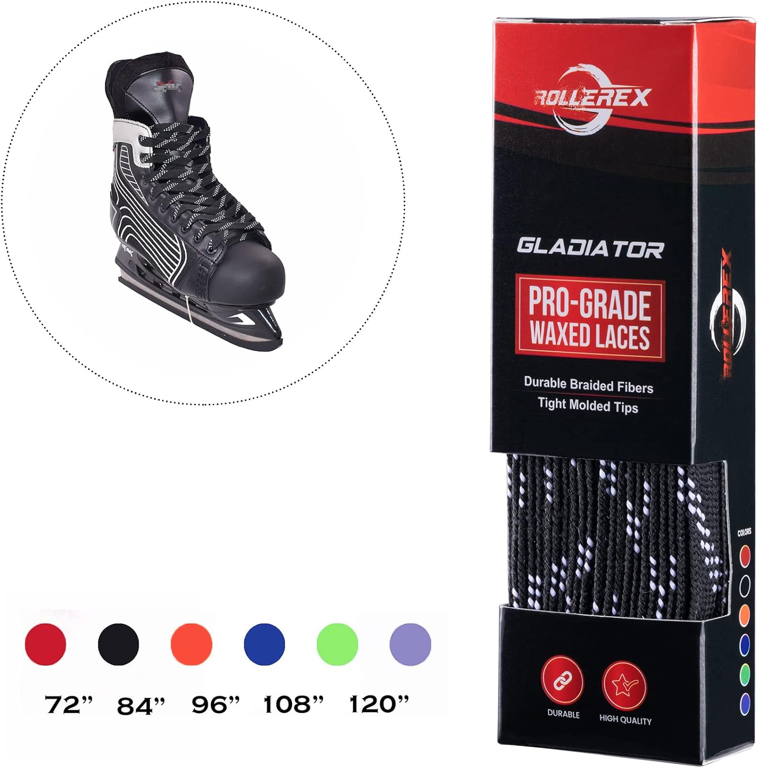 Rollerex ST360 92A 54mm x 32mm Roller Skate Wheels (8-Pack w/Bearings, Spacers and Washers) (Color Options) - Indoor Outdoor - Use for Quad Skate Wheel Replacement (Prime White) Rollerex Gladiator Waxed Skate Laces (Multiple Size and Color Options) (Jet Black, 72")