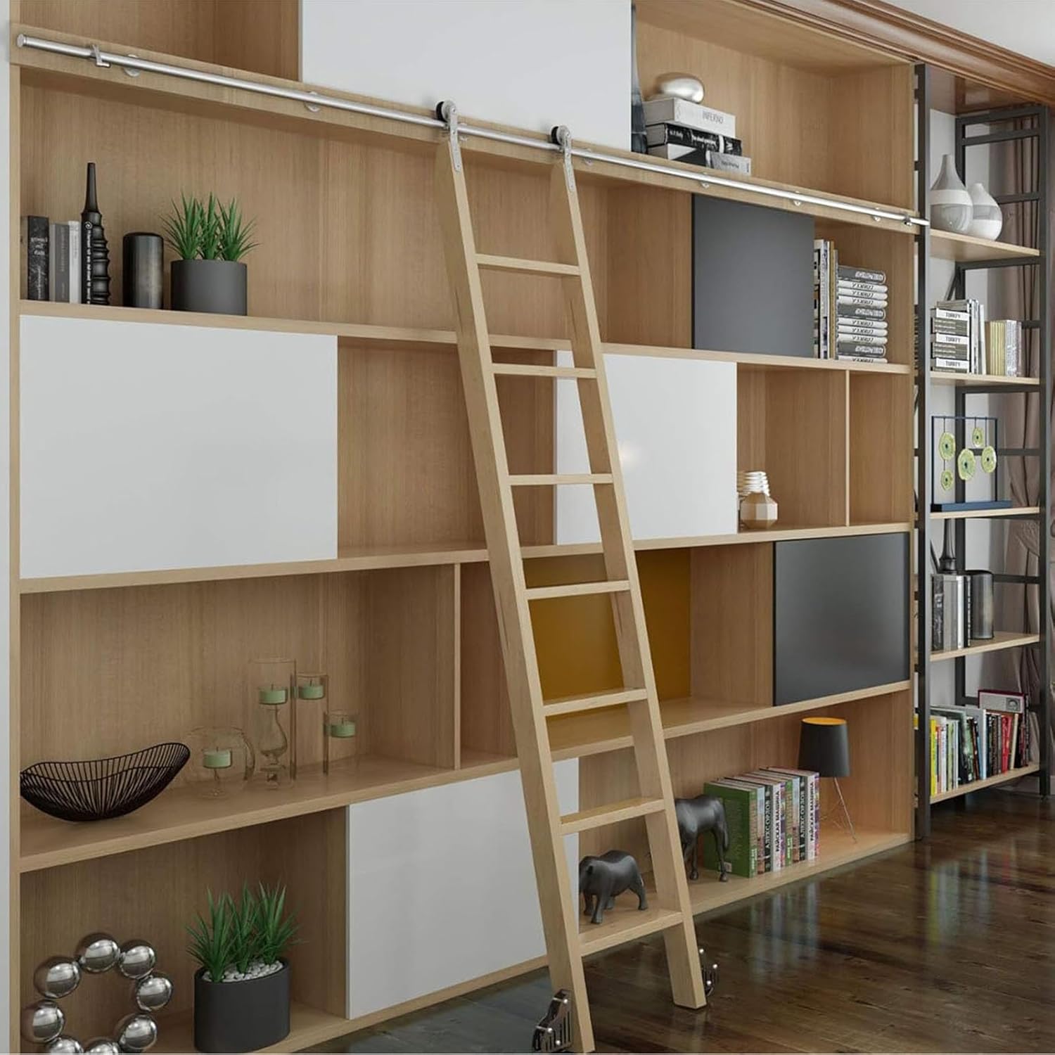 With the help of this track,you can go wherever you want,very suitable for Library,loft,storage room,cloakroom,wine cellar,etc. And it is effortless to climb up and retrieve things,which brings a another highlight to your home and assures you with outstanding quality. Detailed instrctions: -- The product only including hardware,not including ladders. -- High-quality floor roller wheels support separate purchase.
