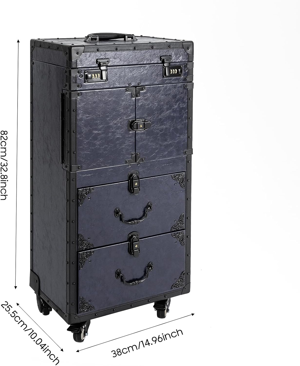 ApplicationIt is suitable for families and individuals as well as commercial places like barber stores, beauty stores, and nail salons. It is suitable for professional make-up artists, nail technicians, hair stylists, cosmetologists, nail students, and people who have mountains of cosmetics.SpecificationsColor: BlueStyle: ModernShape: RectangularProcess: ElectroplatingAssembly Required: YesMount Type: Floor StandingMaterial: PU, Wood board, MetalProduct Overall Size: 38*25.5*82cm/14.96*10.04*32.28inchPackaging Size: 44*33*87cm/17.32*12.99*34.25inchGross Weight: 12.4kg/27.34lbsNet Weight: 11.78kg/25.97lbsPackage Included1*Makeup Case Trolley4*Universal Casters4*Keys